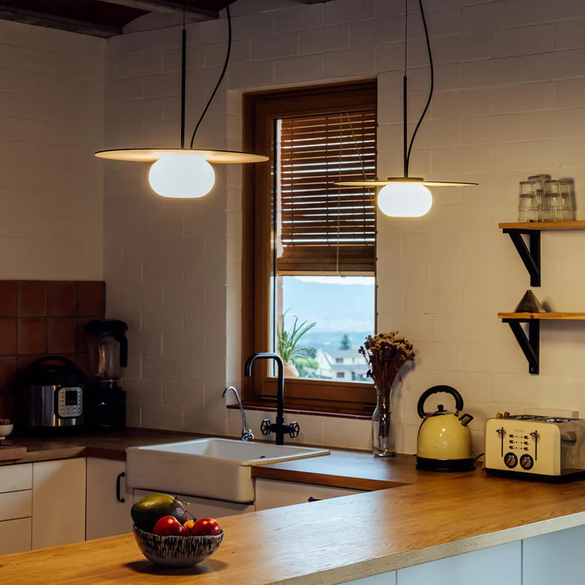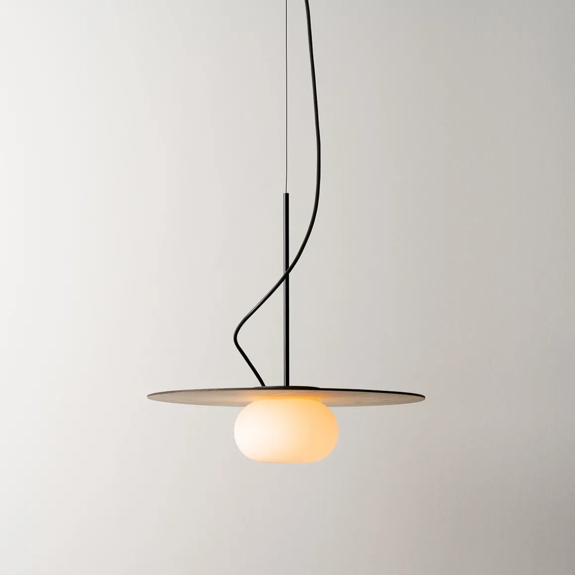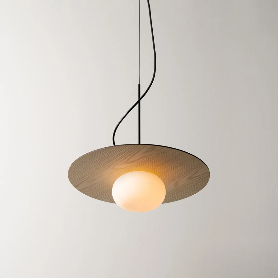 - Moderne Pendelleuchte aus lackiertem Eschenholz und Opalglasdiffusor