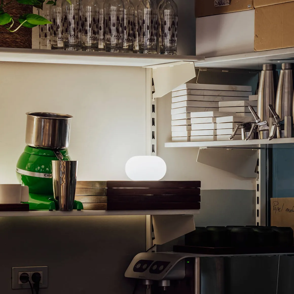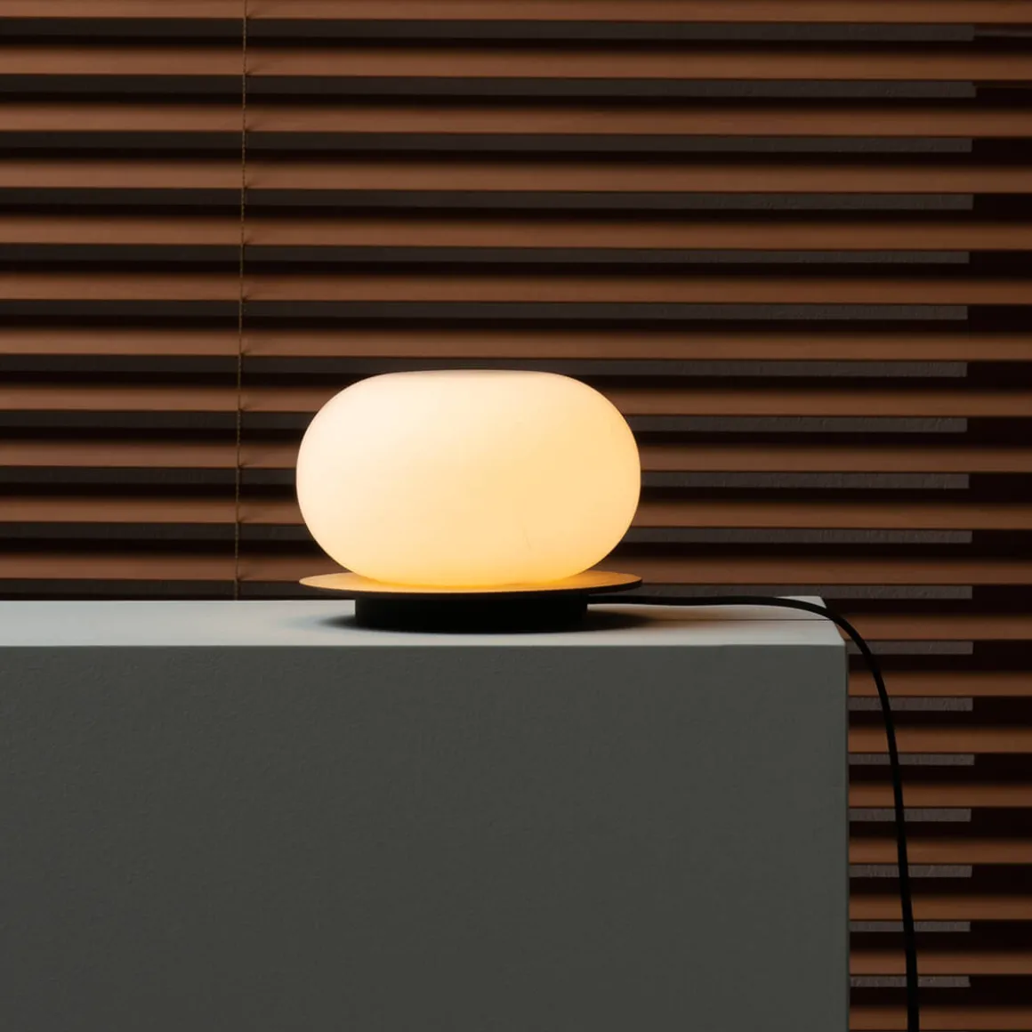 - Moderne Tischleuchte aus lackiertem Eschenholz und Opalglasdiffusor