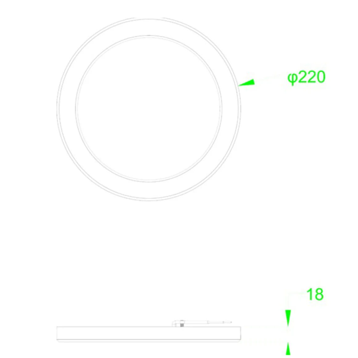 - Ø 22 cm: Zur Aufbaumontage oder zum Einbau in vorhandene Bohrlöcher (65 bis 205 mm) durch verstellbare Federbefestigung