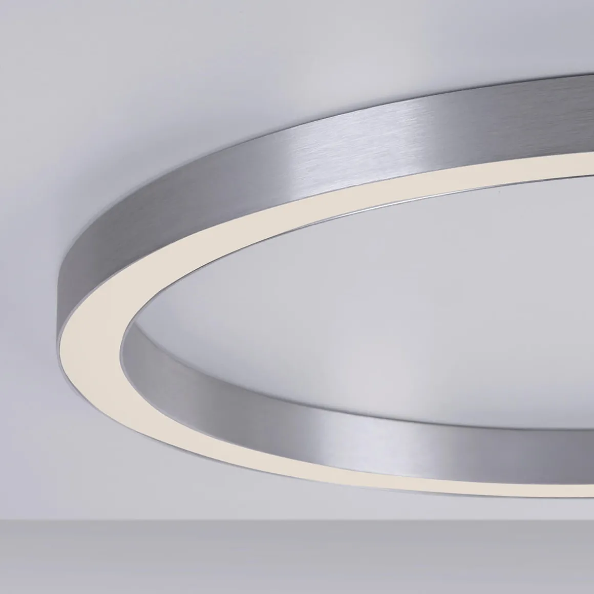 Erleben Sie schlichte Eleganz mit der Lines Round LED Deckenleuchte von Paul Neuhaus PURE. Die ringförmige besticht durch minimalen Materialeinsatz und eine ästhetische Optik ohne störenden Deckenkasten. Mit einem Durchmesser von 50 oder 70 cm und gebürstetem Aluminium oder ein elegantes schwarz fügt sie sich perfekt in jedes moderne Interieur ein.
