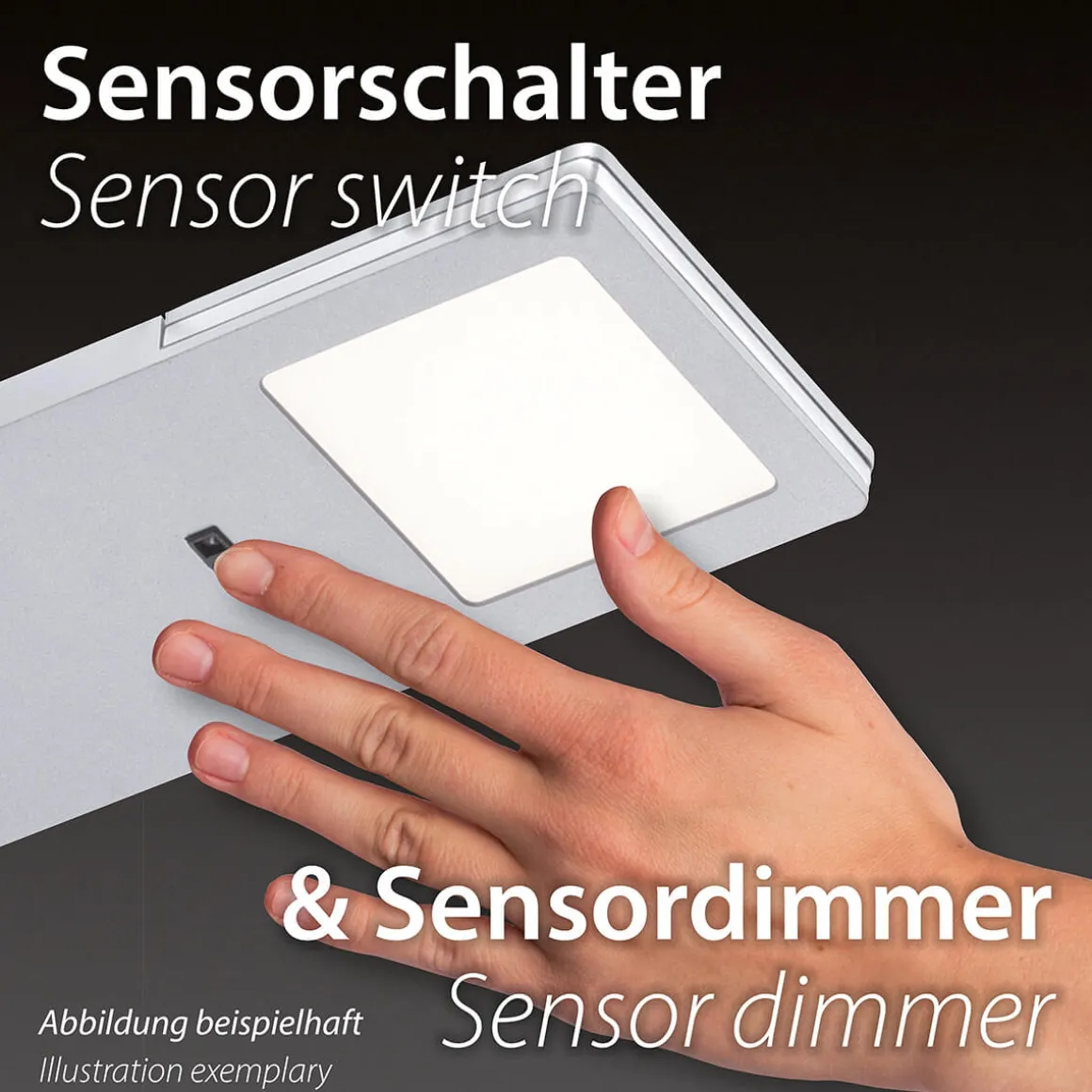 | Lichtsteuerung: | Sensordimmer integriert , Sensorschalter integriert |