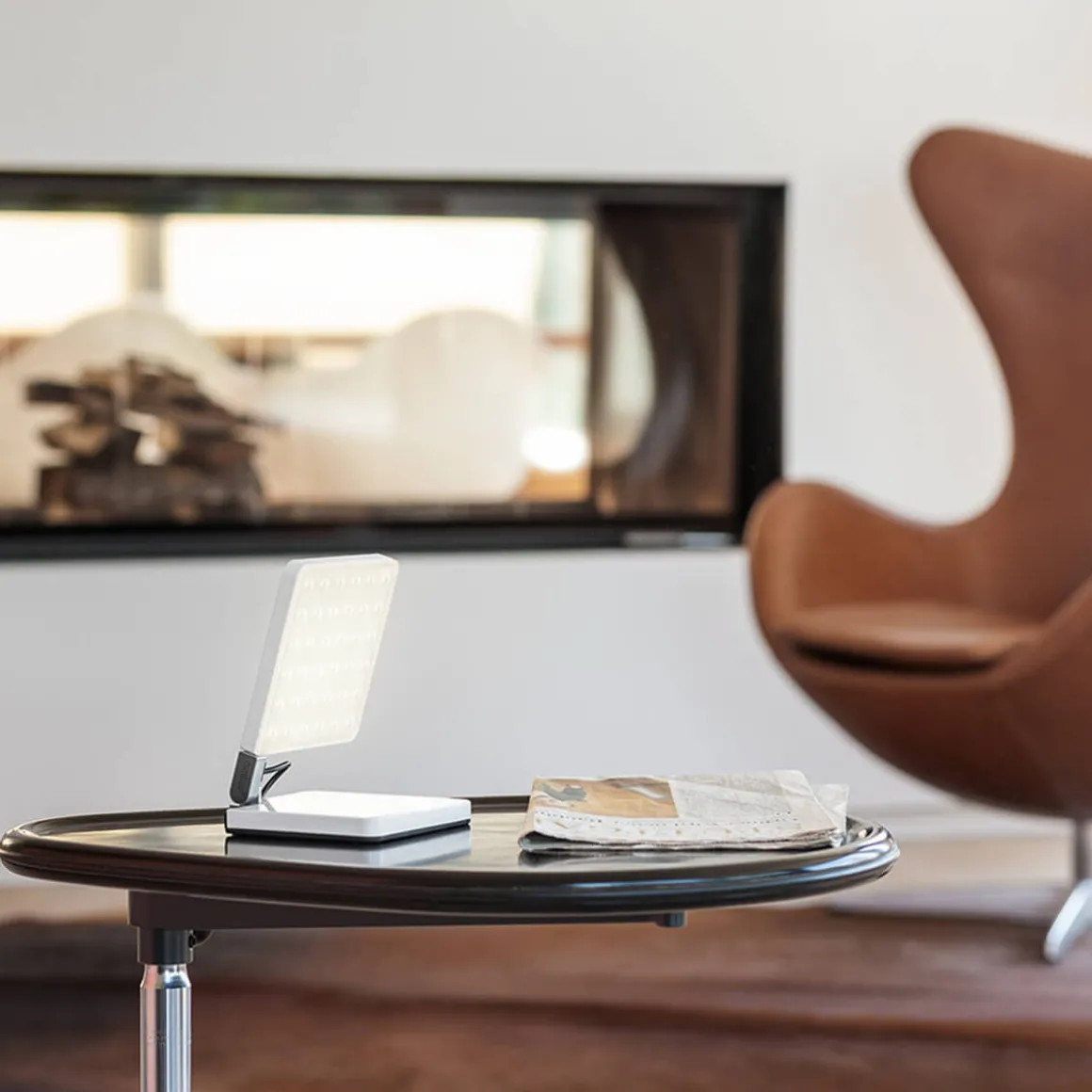 - Portable, akkubetriebene Tischleuchte mit um 270° verstellbarem Kopf