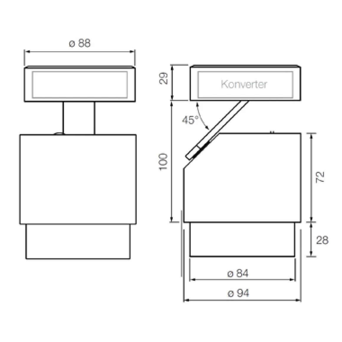 - Konverter zwecks Aufputzmontage integriert