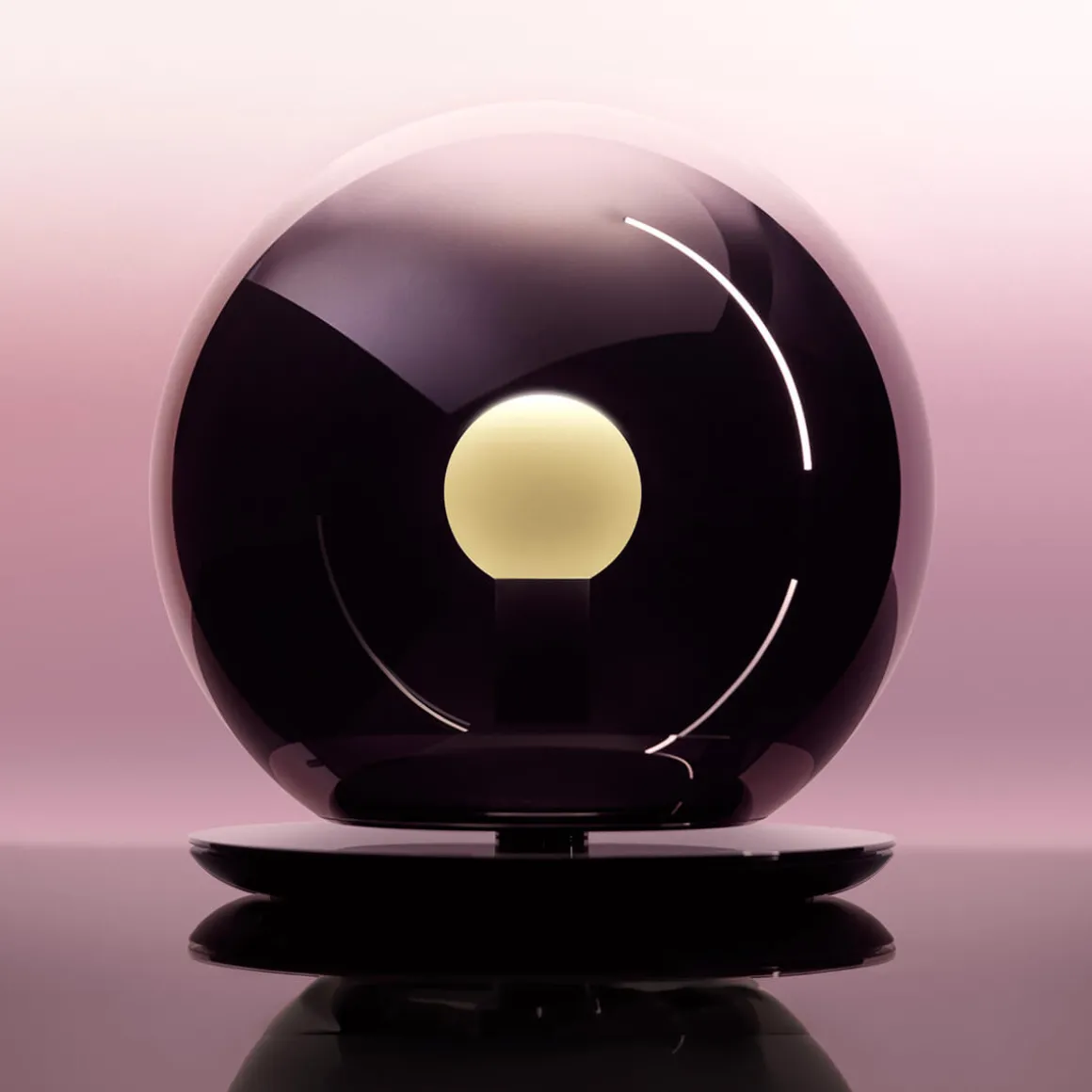 - Kugelförmige Tisch- und Bodenlampe mit bodenverspiegeltem Glas