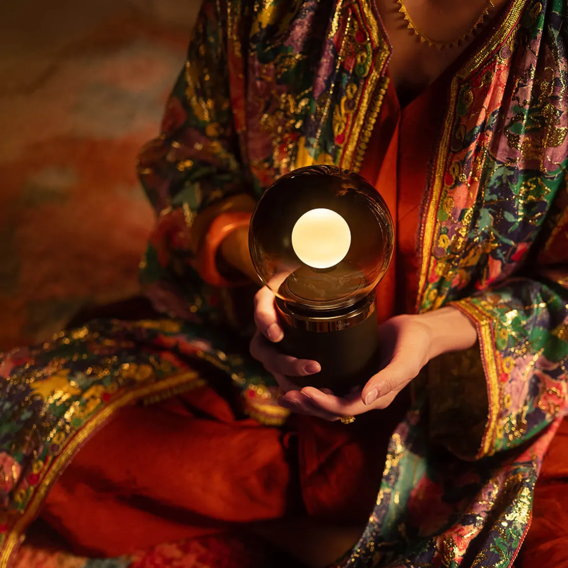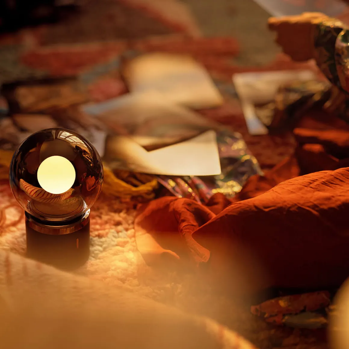 Im Herzen der befindet sich der Occhio fireball, eine revolutionäre Lichtquelle, die blendfreies, fokussiertes Licht mit weichem Umgebungslicht kombiniert. Der kugelförmige, um den fireball befindliche Glasschirm erzeugt einen harmonischen Lichtverlauf und verleiht jedem Raum eine warme, angenehme Stimmung. Die obere Hälfte der Glaskugel ist metallbedampft, sodass das Licht gezielt nach unten gerichtet wird – perfekt für den Einsatz auf Tischen oder Sideboards.