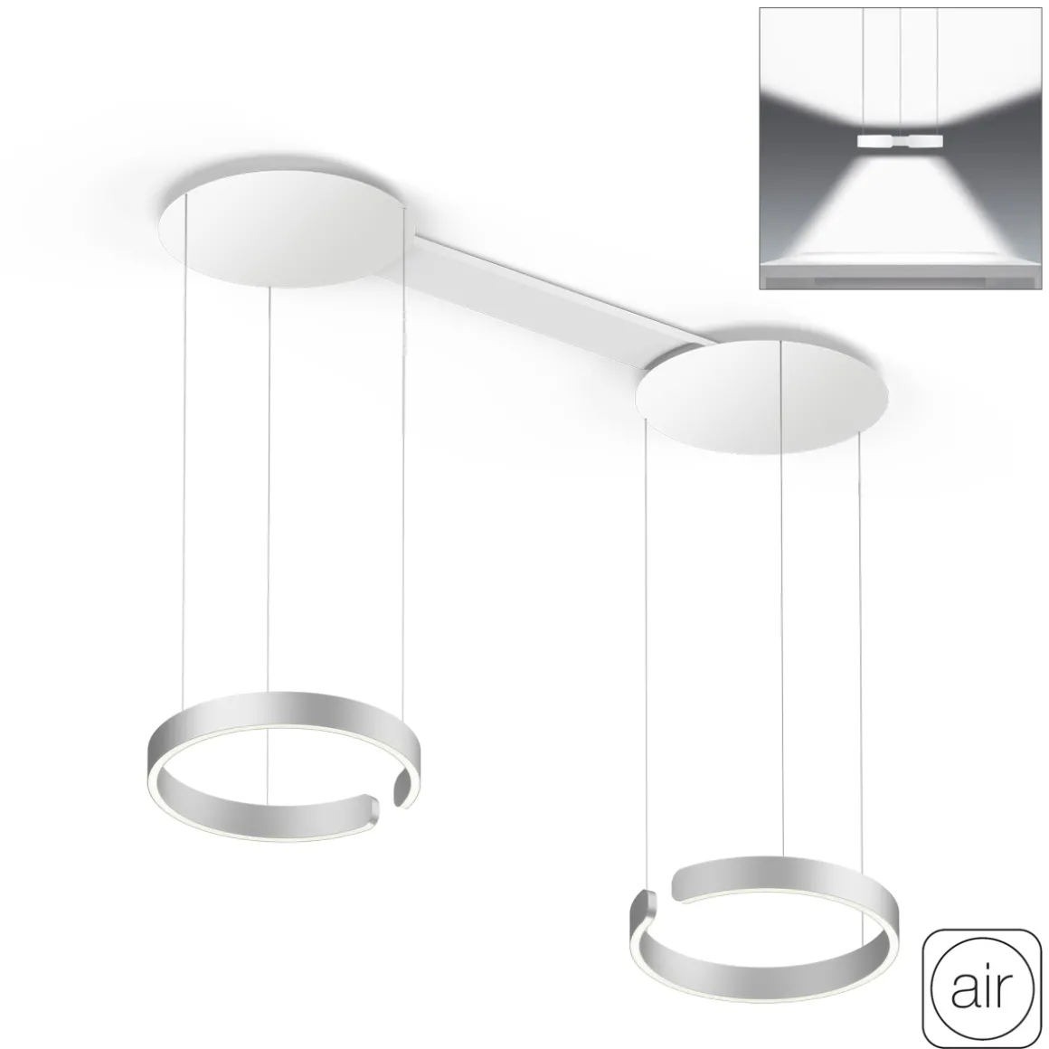 - Variable Verteilung der Lichtleistung zwischen Up- und Downlight möglich (Occhio fading)