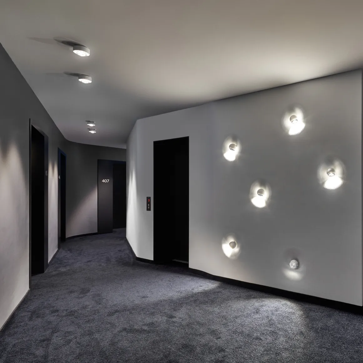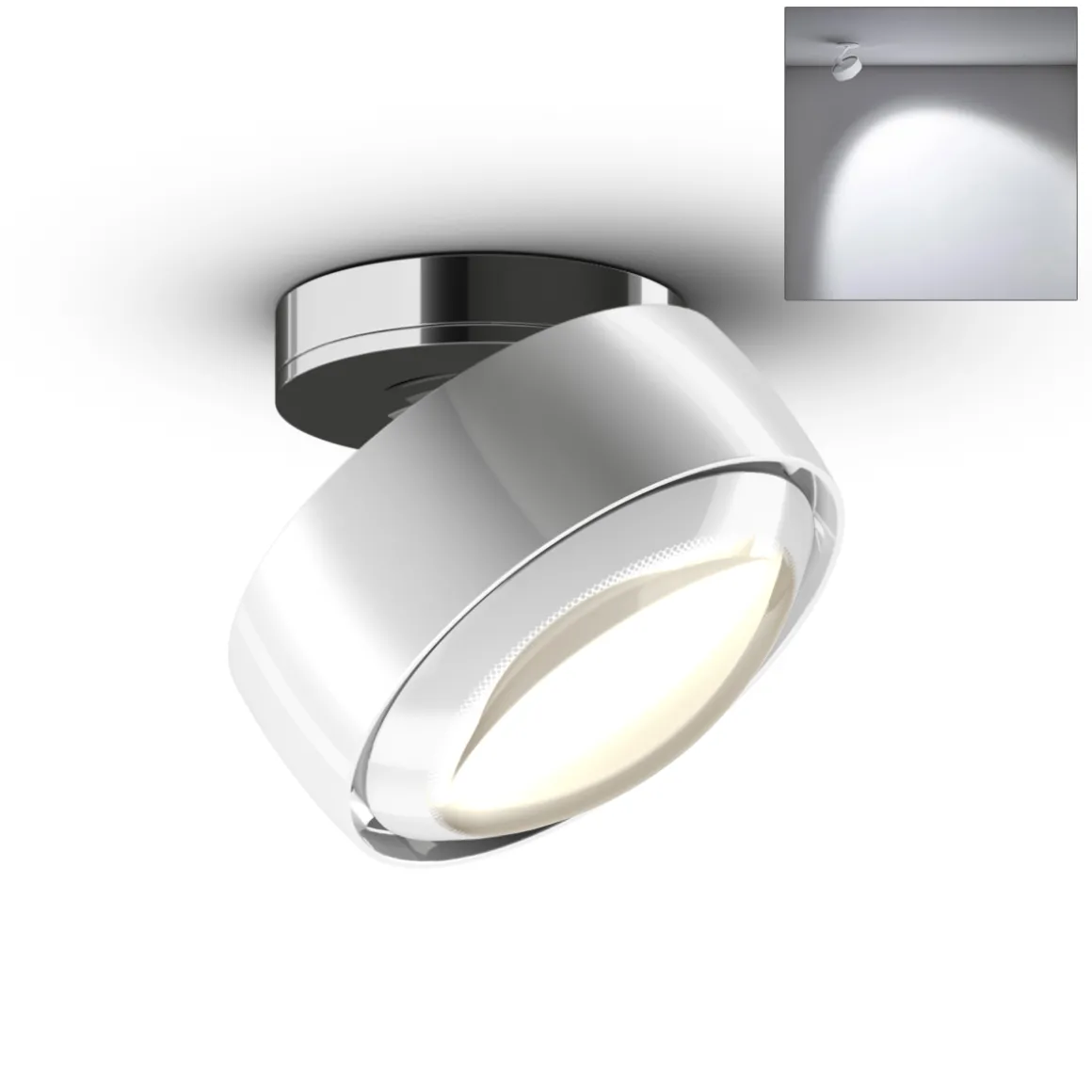 - Deckenstrahler mit soft edge Glas für ein gerichtetes Licht mit weichem, doppelkonturigem Lichtkegel (Ausstrahlungswinkel ca. 80°)