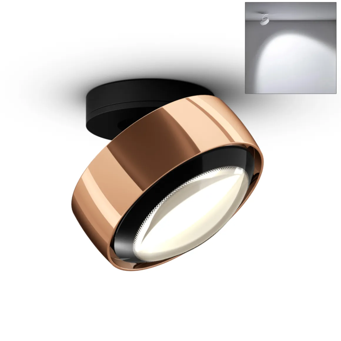 - Deckenstrahler mit soft edge Glas für ein gerichtetes Licht mit weichem, doppelkonturigem Lichtkegel (Ausstrahlungswinkel ca. 80°)