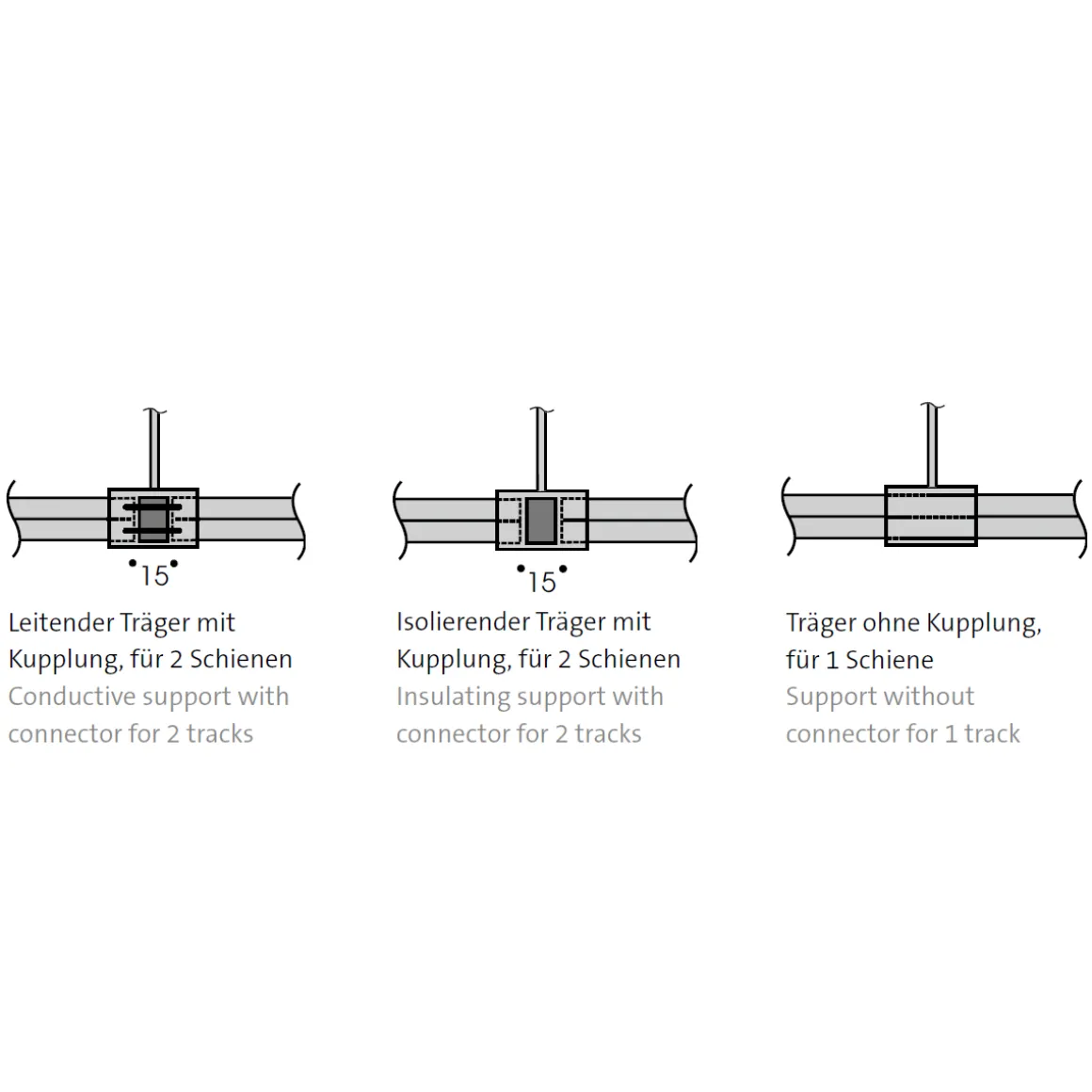 Bitte beachten: Die für ein Schienensystem erforderlichen Komponenten variieren in Abhängigkeit der Anwendungssituation sowie individuellen Anforderungen. Um die Funktionsfähigkeit des Systems zu gewährleisten, sind bestimmte Basiskomponenten unabdingbar. Gern helfen wir Ihnen bei Ihrer Bestellung und überprüfen sie im Hinblick auf Vollständigkeit und Funktionalität. Zögern Sie nicht, sich hierzu mit uns in Verbindung zu setzen!