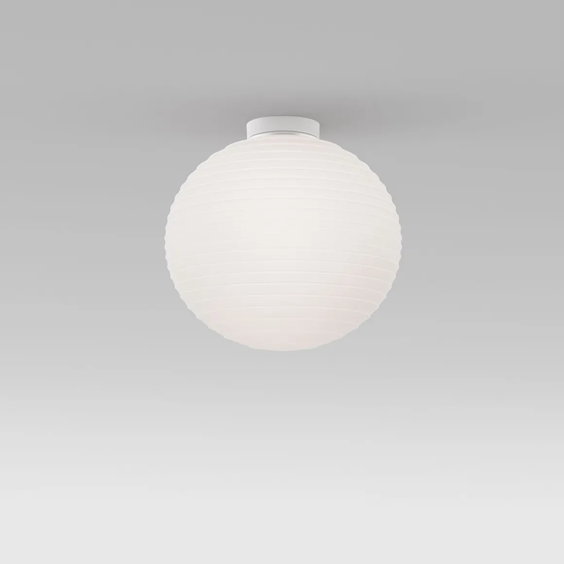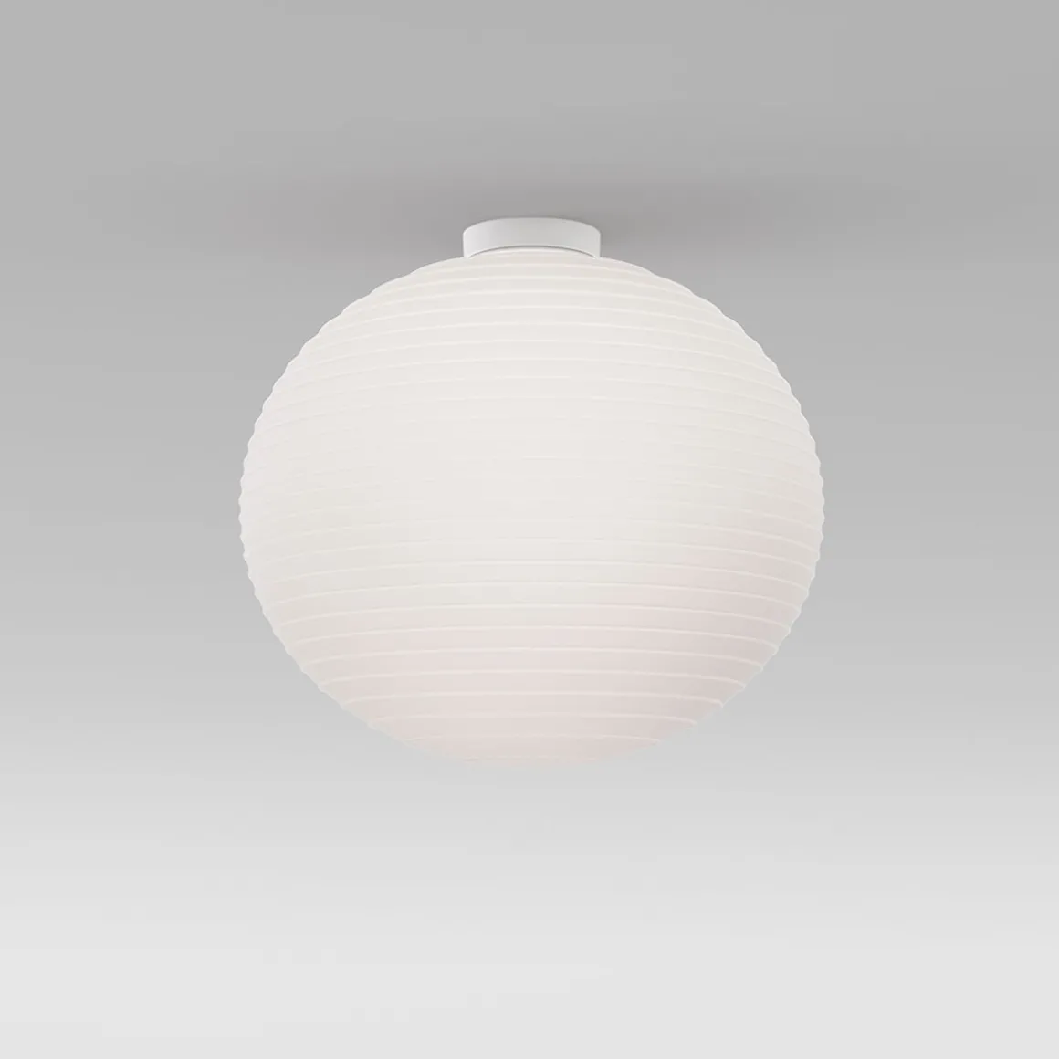 - Runde Deckenleuchte, dessen Design des Lampenschirms an die orientalischen Laternen aus Papier erinnert