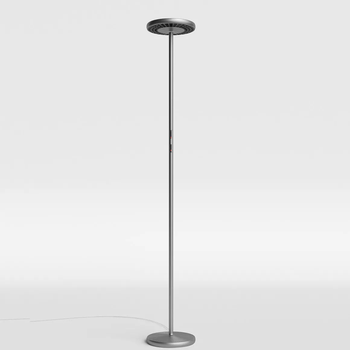 Erleben Sie die faszinierende Rotaliana Sol F1 LED Stehleuchte – ein brillantes Licht, das mit Innovation und Design beeindruckt. Die besteht aus einer sanft abgerundeten Scheibe, die zwei Leuchtkörper beherbergt. Diese wurden entwickelt, um die Strahlkraft von 96 nach unten gerichteten LEDs und 128 nach oben gerichteten LEDs optimal zu nutzen. Die Intensität des Lichts lässt sich getrennt voneinander für die obere und untere Beleuchtung regulieren, um eine perfekte Lichtatmosphäre zu schaffen.