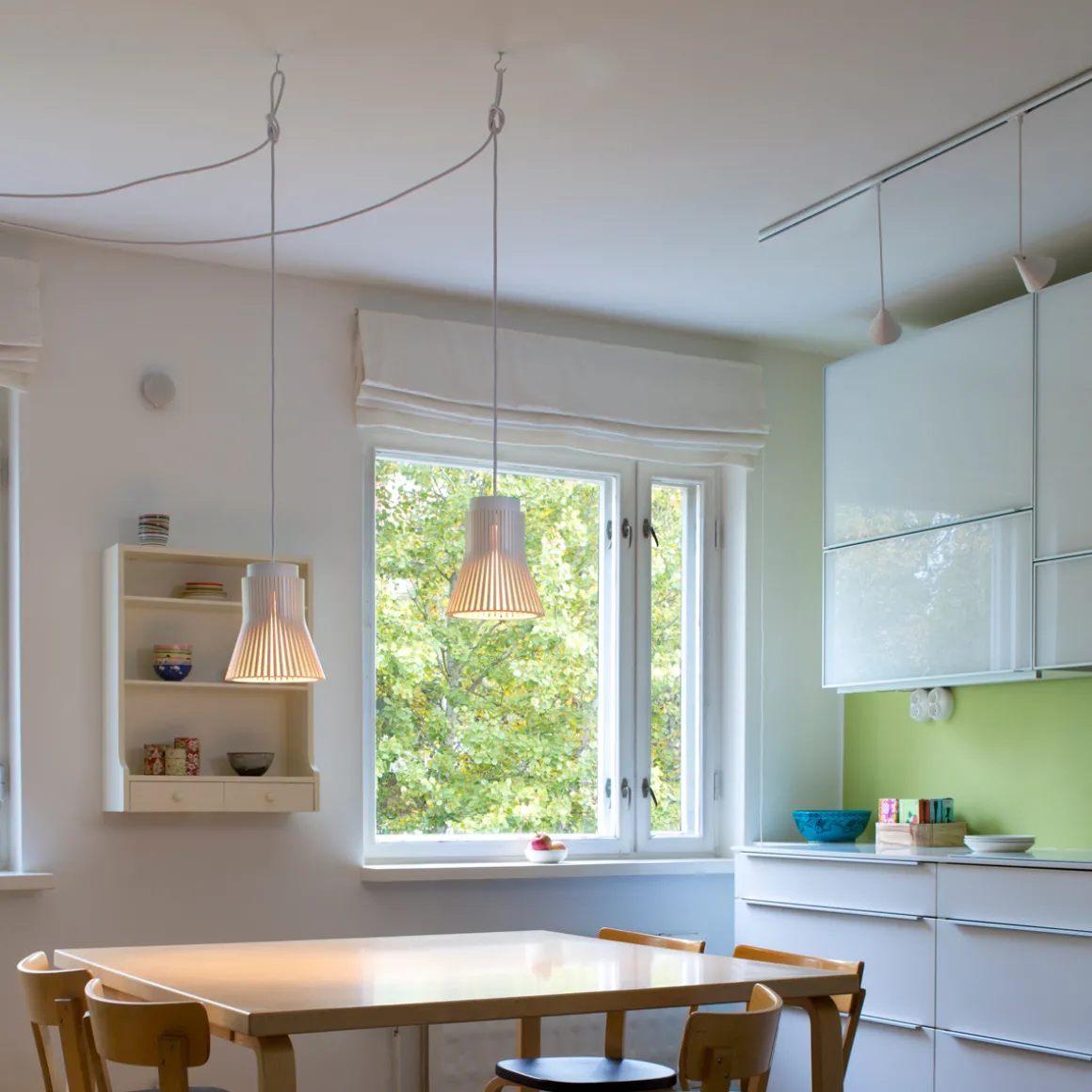- Optimal allein oder in Bündeln über Esstischen und Theken