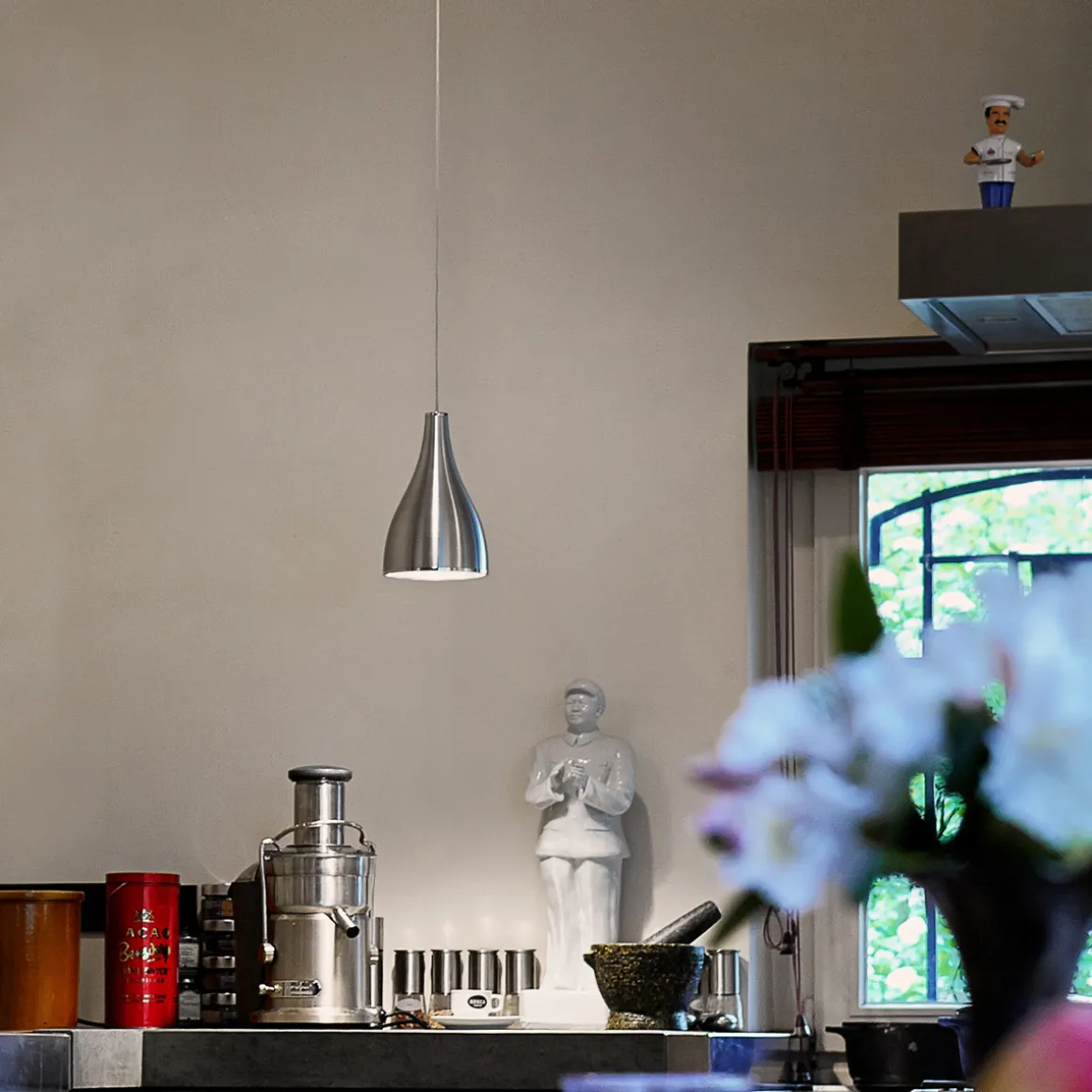 Die One Eighty Suspension Pendelleuchte dient zur gezielten Beleuchtung von Theken und Esstischflächen und überzeugt als Einzelleuchte wie auch in einer reizvollen Reihung mit weiteren Leuchten. Die Pendellampe verfügt über einen Mechanismus zur stufenlosen Höhenverstellung, wodurch sie sich bequem in ihrer Höhe verändern lässt. Als Deckenhalterung dient ein konisch geformter Baldachin, der in seiner Form den Leuchtenschirm spiegelt und ebenso wie dieser aus Aluminium gefertigt ist.