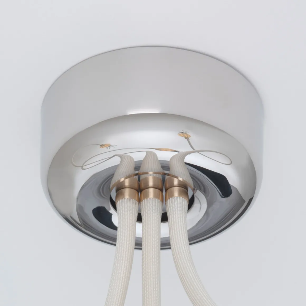 | Material/Oberfläche: | Lamellen: Bimetall, Flexarme: textilummanteltes Metall, Baldachin: Edelstahl poliert |
