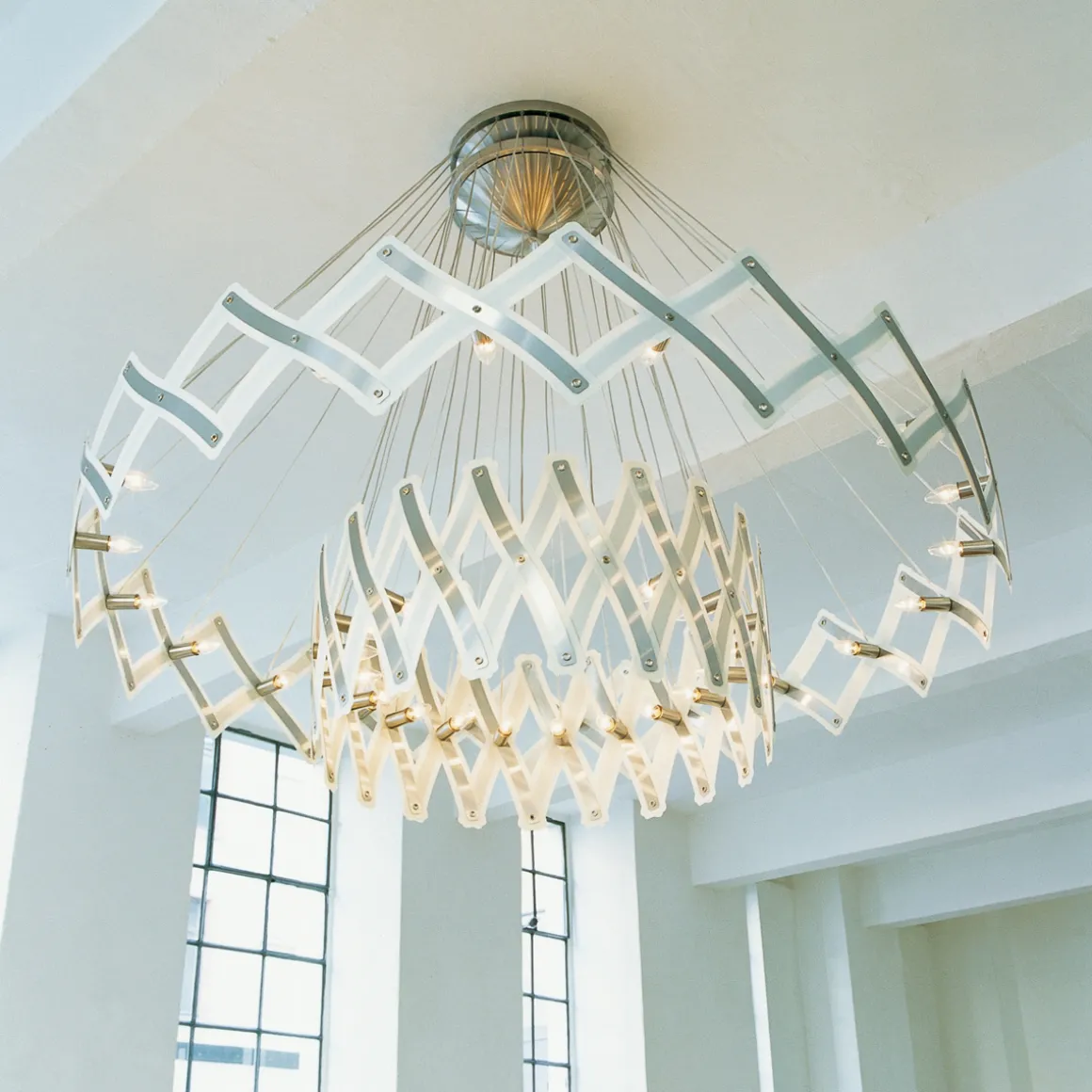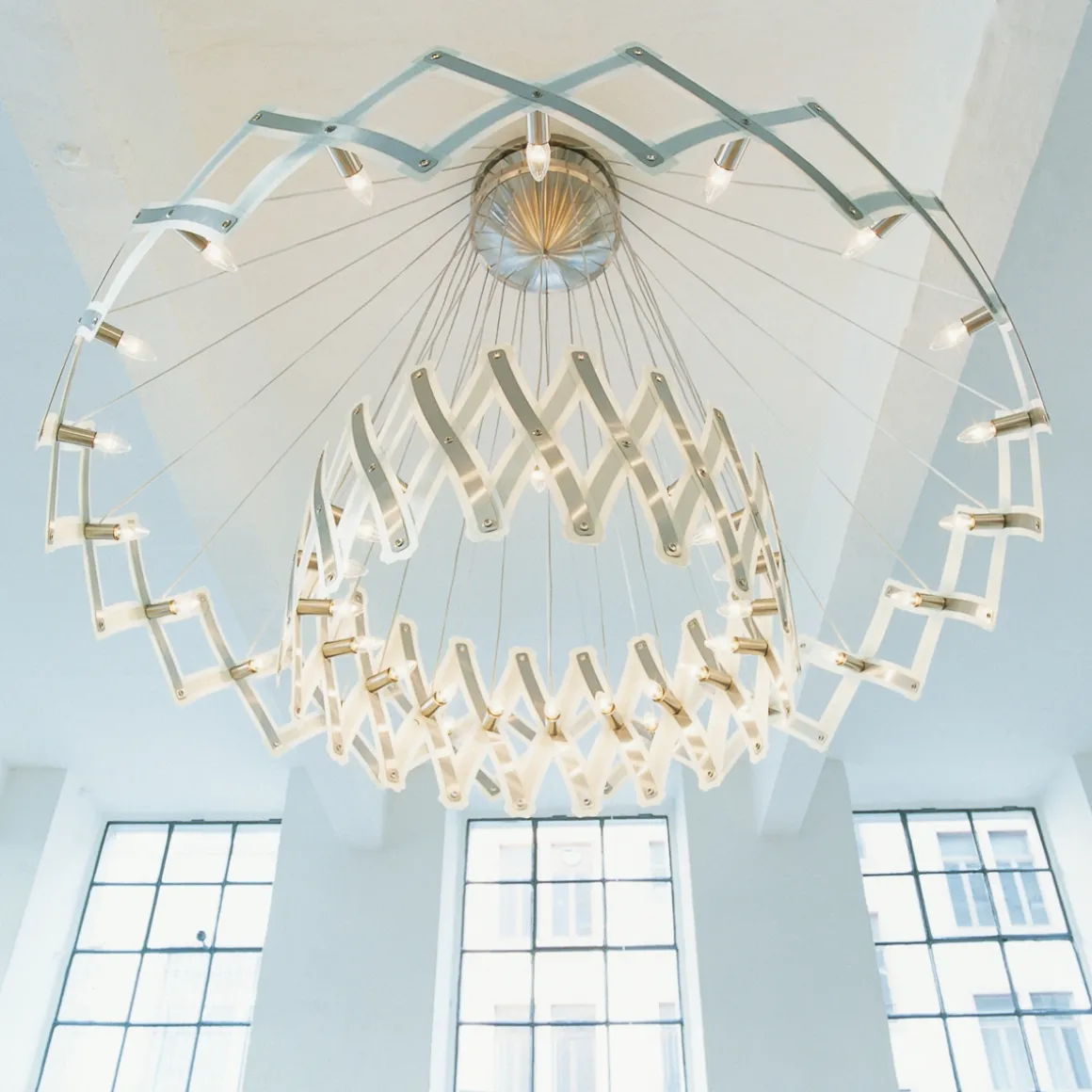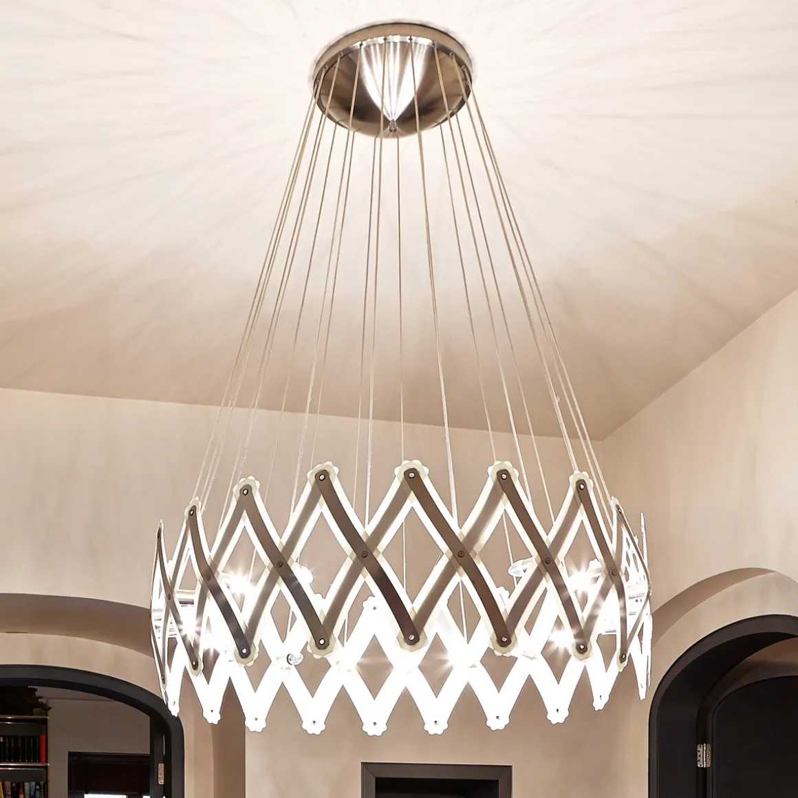 - Größenverstellbare Pendelleuchte aus gebürstetem Edelstahl
