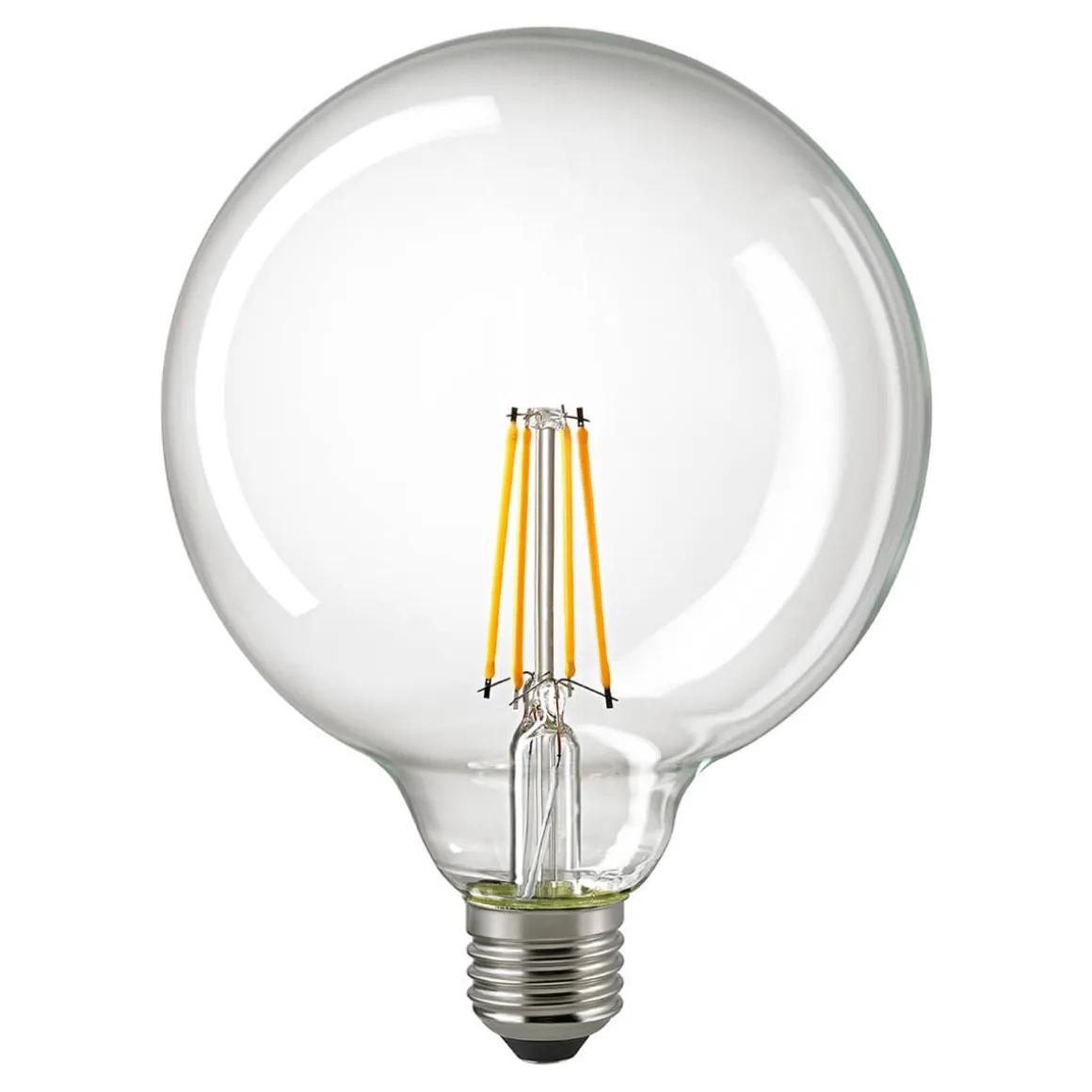 - Klare LED-Filamentlampe in Form einer klassischen Globelampe