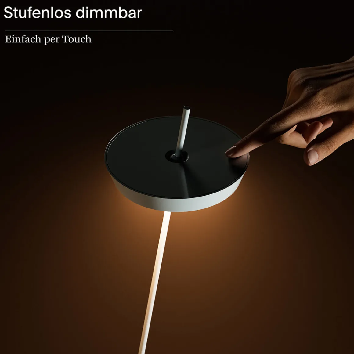 Die kabellose Stehlampe ist nicht nur schön anzusehen, sondern auch ausgesprochen praktisch: Dank ihres schwenkbaren, abnehmbaren Leuchtenkopfs lässt sich der Lichtaustritt gezielt ausrichten – ideal zum Lesen oder für gemütliche Lichtinseln im Raum. Über den Touchdimmer am Kopf schalten Sie die ein oder dimmen sie ganz intuitiv – für eine Atmosphäre, die sich Ihrem Alltag anpasst.