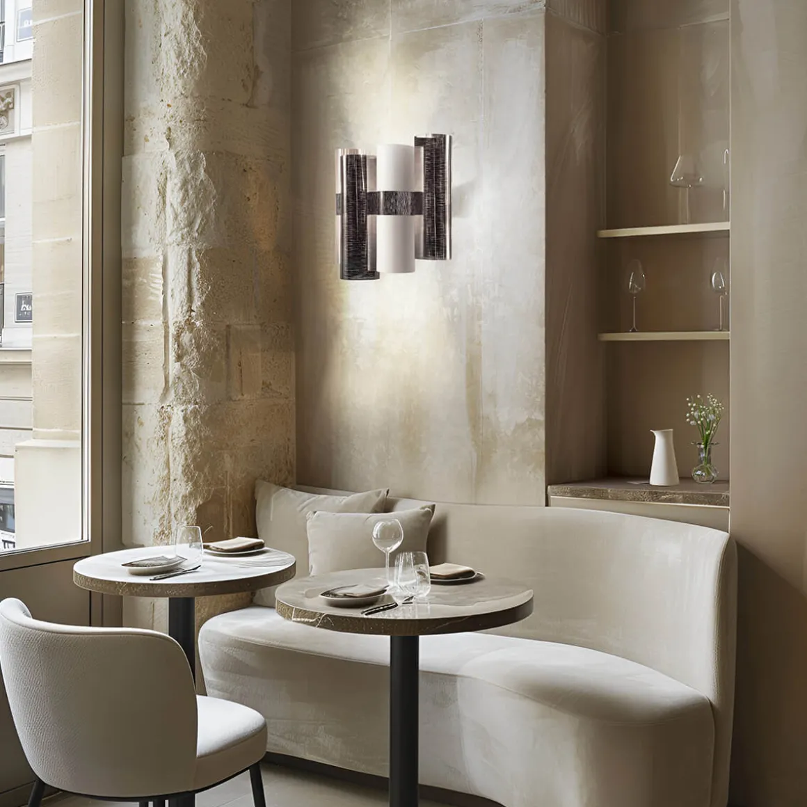 Die Akzentleuchte zeichnet sich durch eine Kombination aus direkter und indirekter, diffuser Lichtausstrahlung aus, die ein zauberhaftes Akzentlicht schafft. Dies macht sie zur perfekten Wahl für private Wohnzimmer und Flure. Aber auch in öffentlichen Innenräumen wie Salons, Lounges und Hotellobbys entfaltet sie ihre stilvolle, spektakuläre Wirkung.