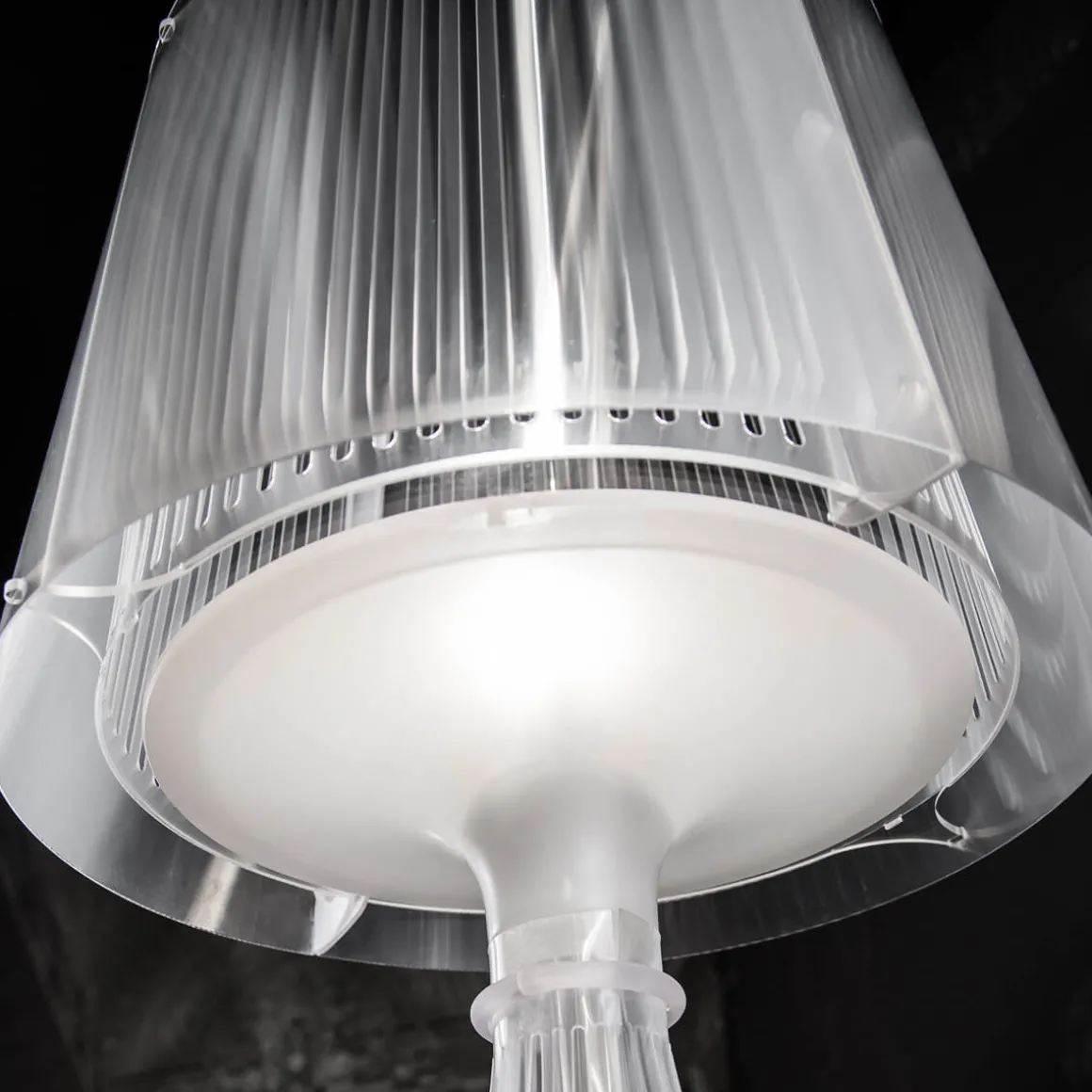 Der Korpus der Liza Tischleuchte besteht aus teiltransparentem Lentiflex®, innovativen Technopolymeren, die sich durch Widerstandsfähigkeit und eine besondere Brillanz auszeichnen. Der Lampenschirm ist von schmalen vertikalen Schnitten überzogen. Diese erzeugen, sobald die eingeschaltet ist, ein dekoratives Spiel aus Licht und Schatten, das sich auch auf die umliegenden Flächen projiziert.