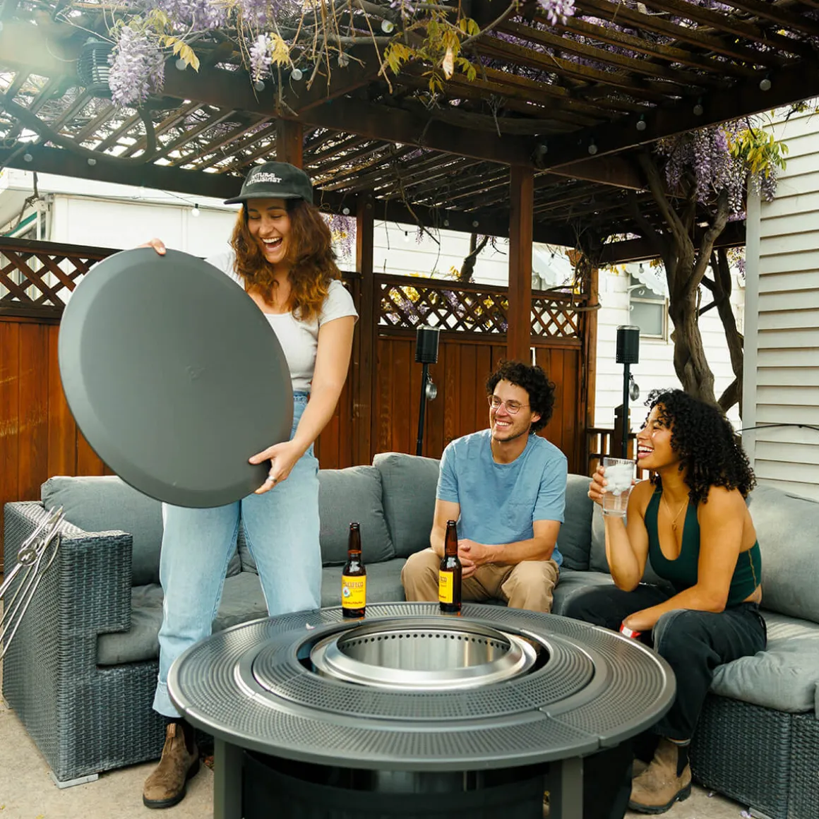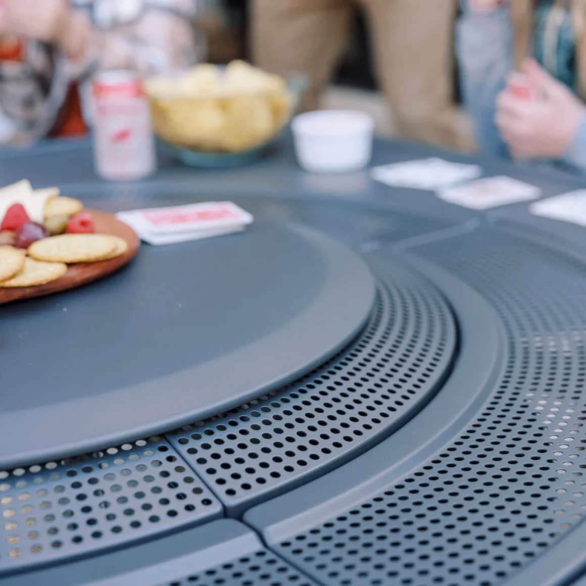 Die leicht gewölbte Oberseite des Deckels ergänzt das elegante Design des Surround Feuerschalentischs und bietet eine stabile Plattform, um Aufschnittplatten, Vorspeisen und mehr zu kredenzen. Nach dem Schmaus kann der Deckel einfach abgenommen werden, um das Feuer Ihrer Ranger, Yukon oder Bonfire Feuerschale zu entzünden.