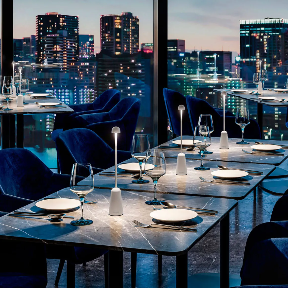 - Schlanke Akkulampe mit einem standfestem Sockel aus veredeltem Aluminium