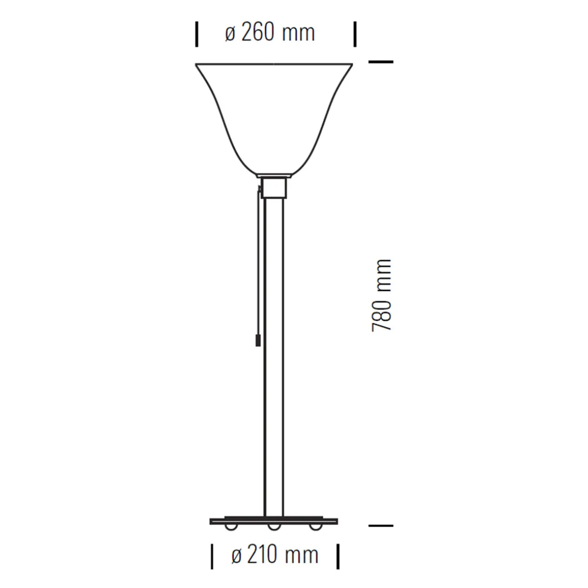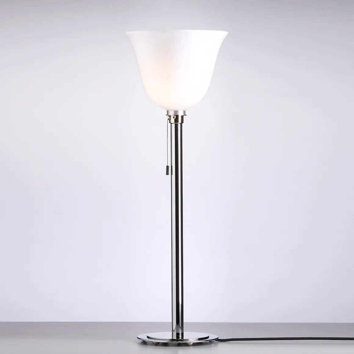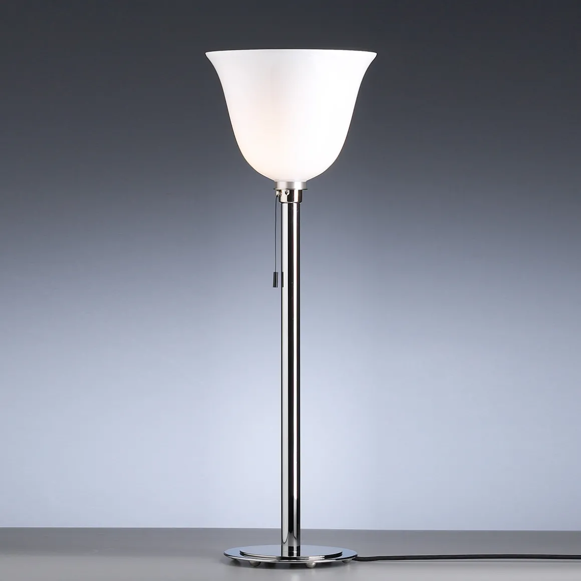 - Fuß und Rohr verchromt, obere Fußplatte und Fassung vernickelt, Glas opalüberfangen