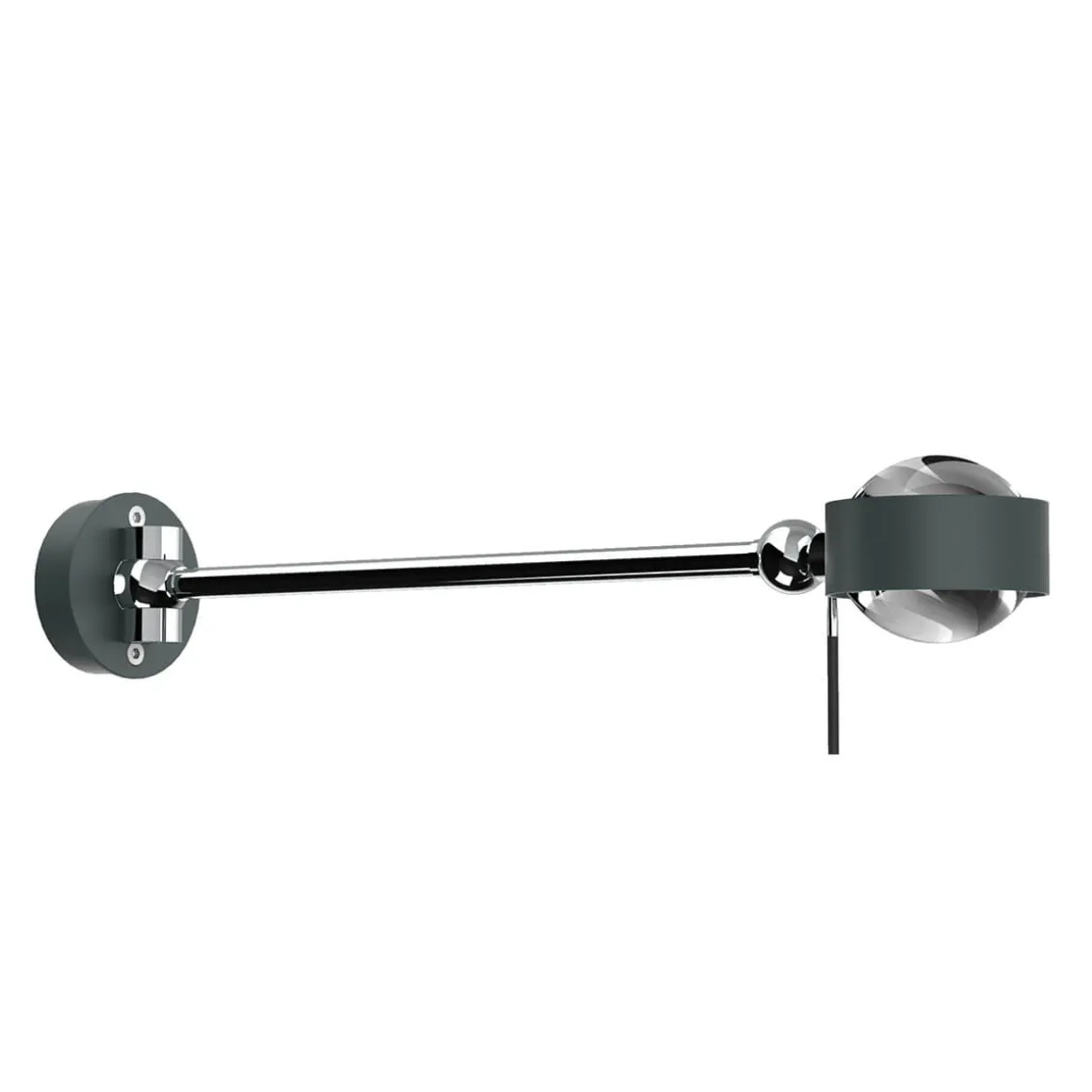 Bei dem hier angebotenen Artikel handelt es sich um das Gehäuse der Puk Mini Hotel Wandlampe, das mit Linsen und Farbfiltern individuell bestückt werden kann. Die passenden Einsätze sind als Zubehör erhältlich und können gesondert hinzubestellt werden. Auf Anfrage und gegen Aufpreis ist die auch mit Schaltermontage (links oder rechts) erhältlich.