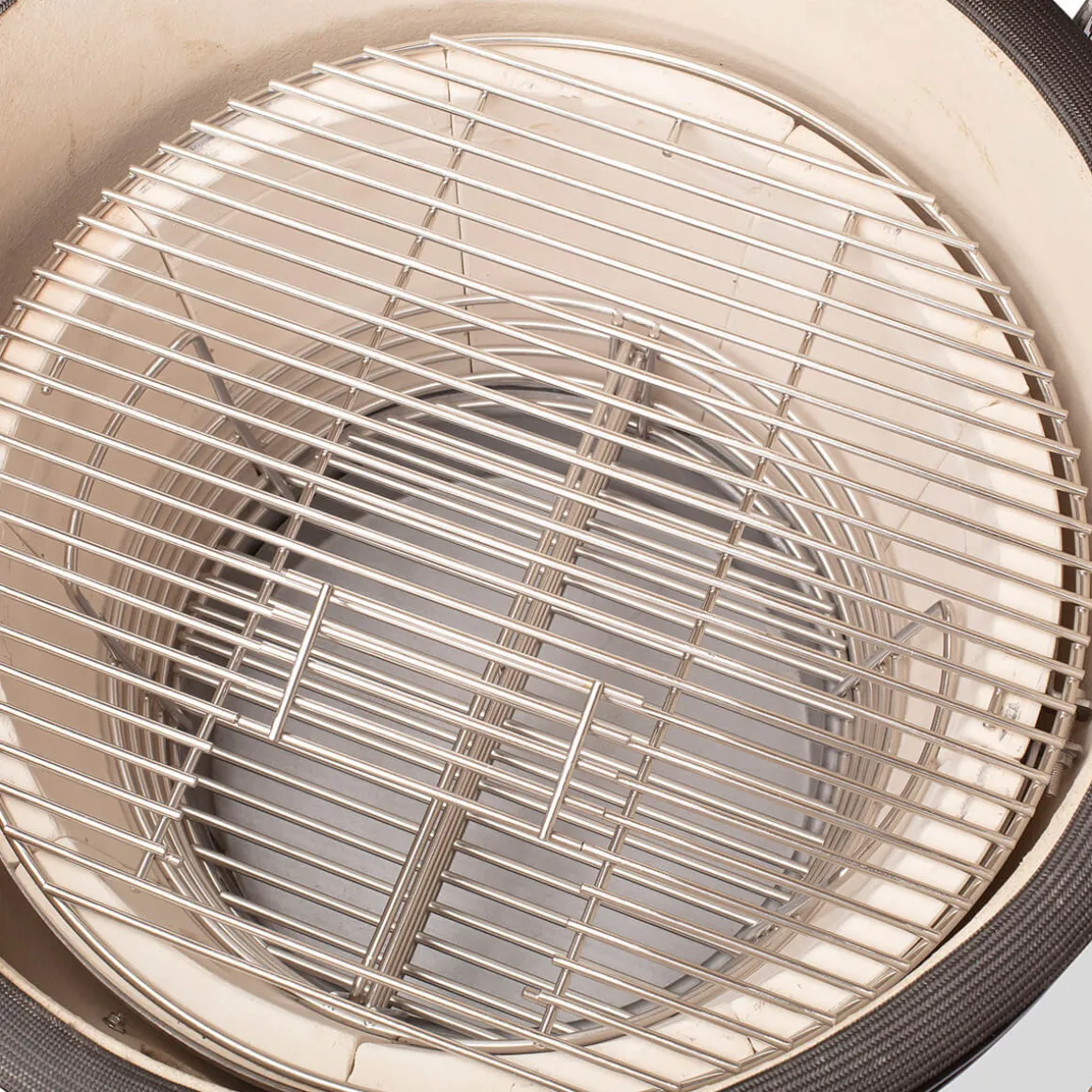 Geliefert wird der Yakiniku Kamado inklusive Pro Set. Dieses umfasst eine Multilevel-Erhöhung, zwei Halbmond-Hitzedeflektoren und zwei Halbmond-Grillroste. Die Einsätze erlauben das Grillen auf verschiedenen Ebenen und bieten somit zusätzliche Flexibilität. Beispielsweise können Sie ein Stück Fleisch auf der einen Seite anbraten und zugleich auf der anderen Seite weitergaren lassen, um die perfekte Zubereitung zu erreichen.