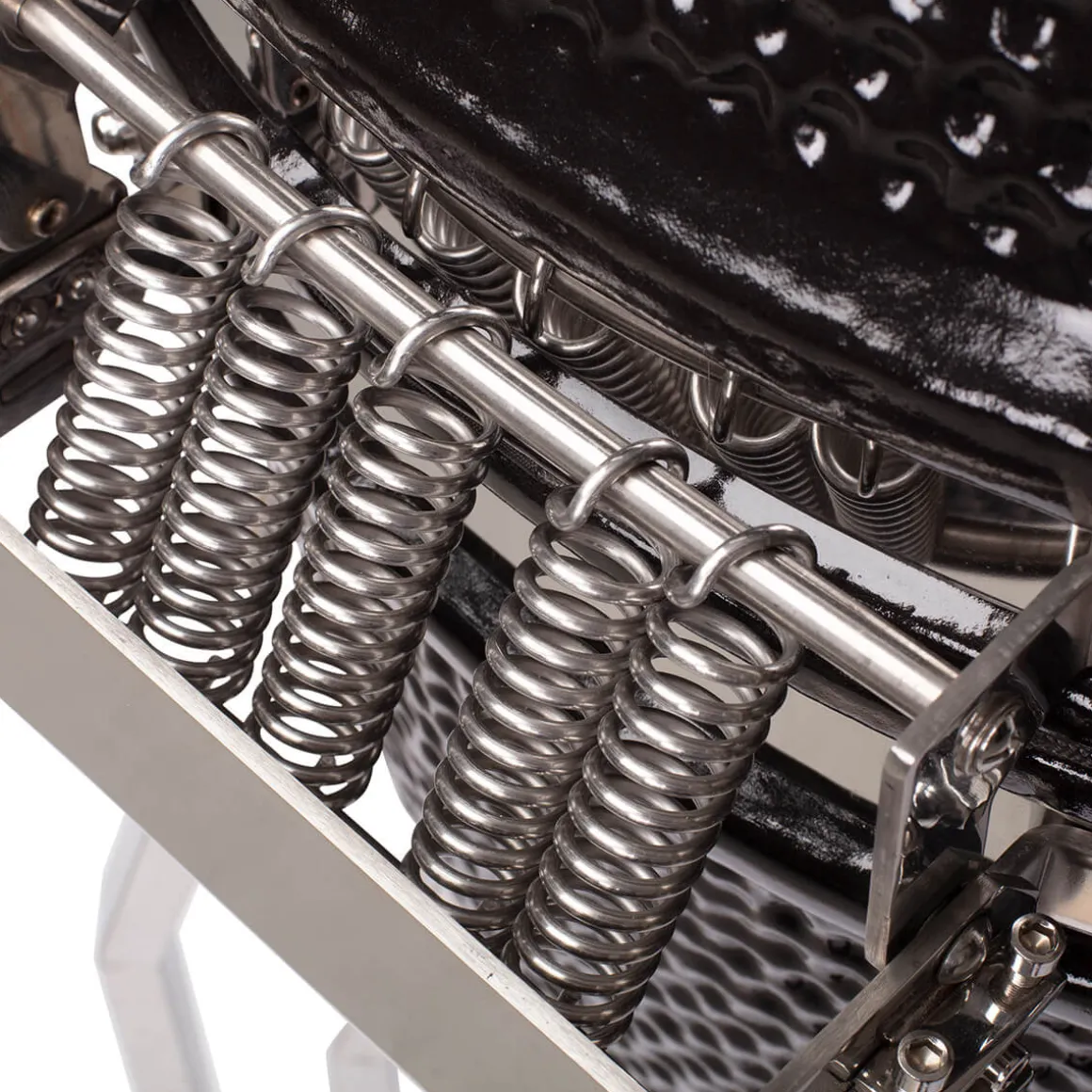 Die Gartemperatur haben Sie mit dem Thermometer im Deckel stets genauestens im Blick. Zudem verfügt der Yakiniku Kamado über solide Federgelenke aus Edelstahl, die den massiven Deckel, wenn geöffnet, sicher in Position halten und ein versehentliches Zuschlagen verhindern. Das rollbare Edelstahlgestell macht es ein Leichtes, den Grill zu bewegen.