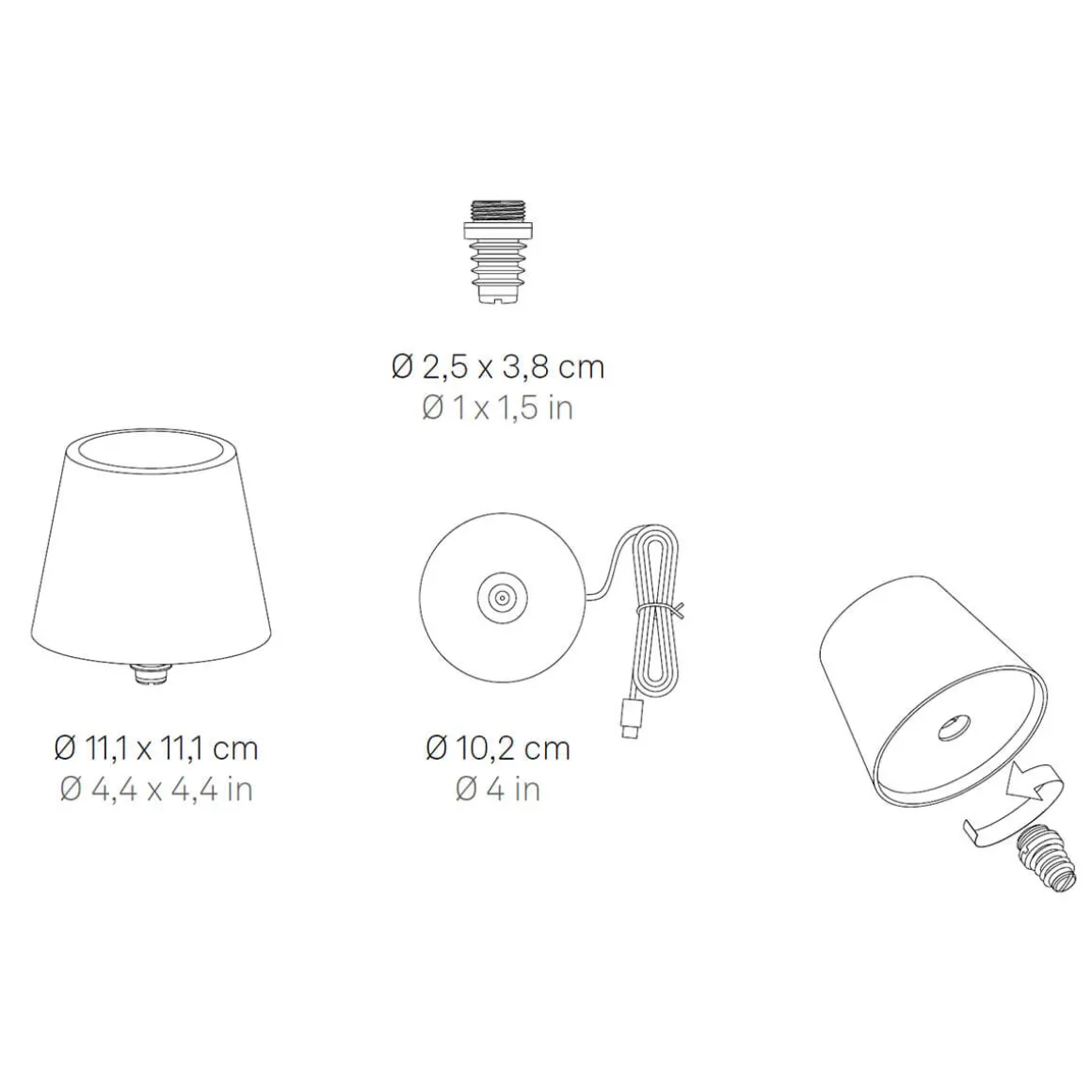 Das Aufladen erfolgt bequem über die mitgelieferte induktive Kontaktladestation (Adapter nicht enthalten). Um die Akkulampe darauf zu platzieren, lässt sich der Silikonverschluss einfach abnehmen. Die Ladezeit beträgt etwa 6 bis 7 Stunden. Mit ihrem Gehäuse aus Aluminiumdruckguss, das in sechs modischen Farben erhältlich ist, ist die Zafferano AiLati Poldina Stopper ein Muss für alle, die ihre Abendgestaltung mit einem Hauch von Eleganz und Originalität bereichern möchten.