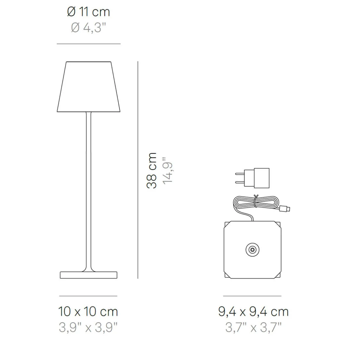 Der in der Poldina Pro verbaute Akku verspricht Energie für bis zu 12 Stunden Licht (bei 100 % Lichtleistung). Ist die Energie versiegt, können Sie die Tischleuchte mithilfe der mitgelieferten Einzel-Kontaktladestation wieder aufladen. Übrigens funktioniert die auch dann, wenn sie an die Ladestation angeschlossen ist. Haben Sie diese gerade nicht zur Hand, lässt sich alternativ ein zertifiziertes Aufladegerät mit max. 5V DC/1A verwenden.