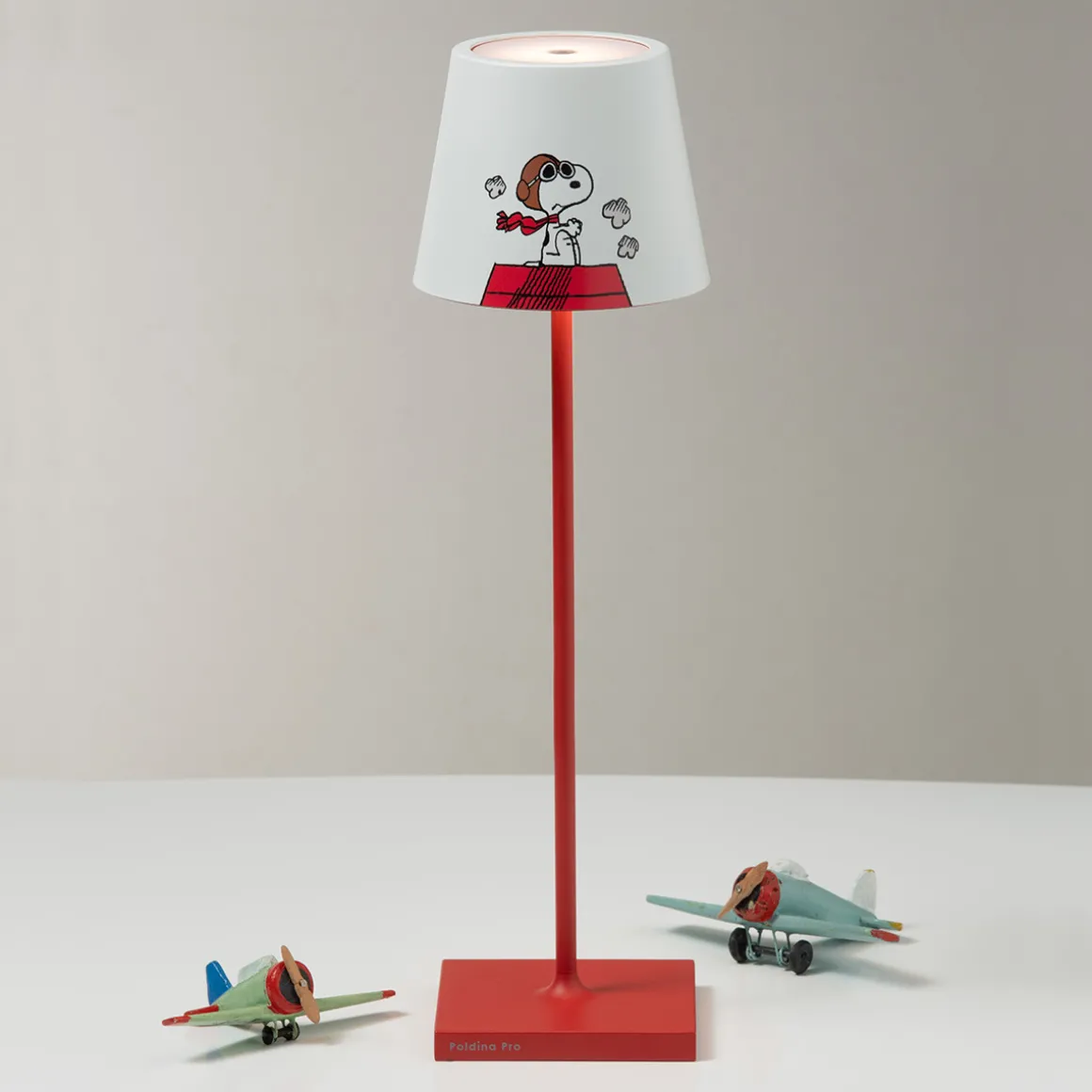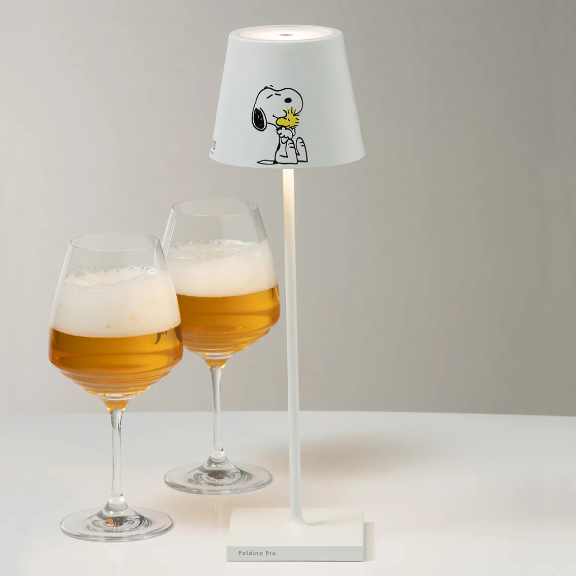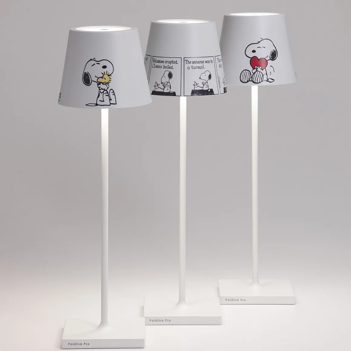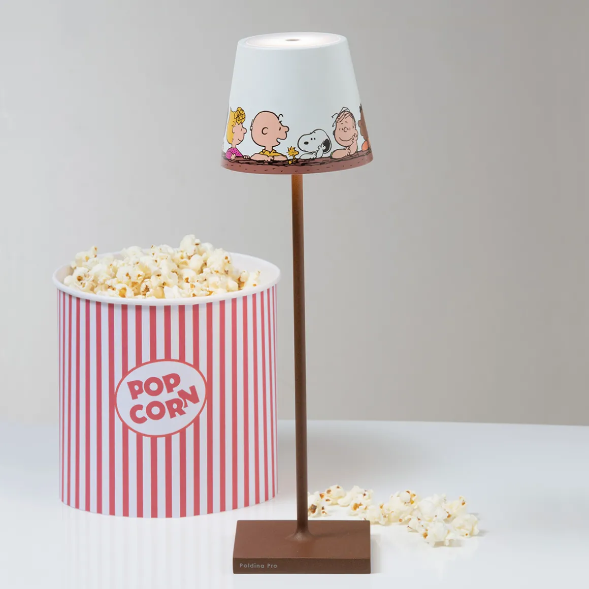 Poldina meets the Peanuts! In einer kunstvollen Sonderedition schmücken den Schirm der ikonischen Akkulampe die beliebten Comichelden der Peanuts Comicserie. Die „Peanuts“, Kreationen des amerikanischen Autors und Zeichners Charles M. Schulz von 1950, sind weltbekannt und verleihen der Poldina Pro eine verspielt anmutende, dynamische Note.