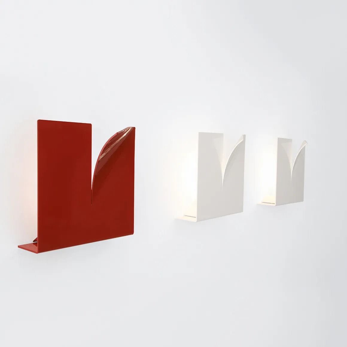 - Designer-Wandleuchte mit einem schwungvollem Knick im Leuchtenschirm