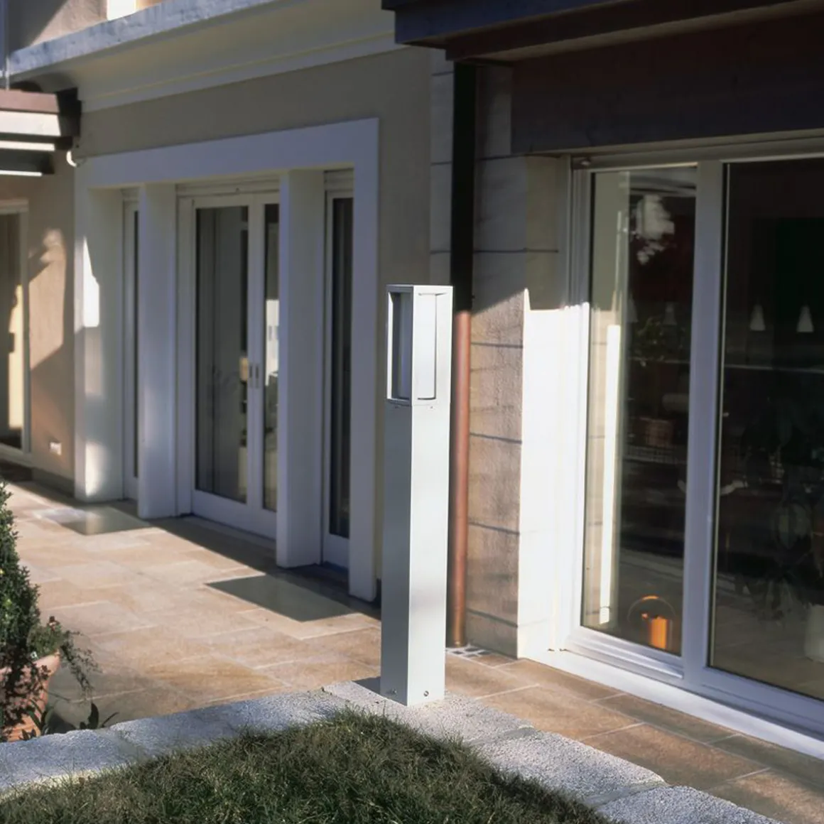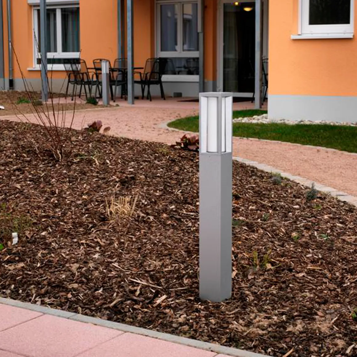 - Moderne Pollerleuchte mit geometrischer Linienführung