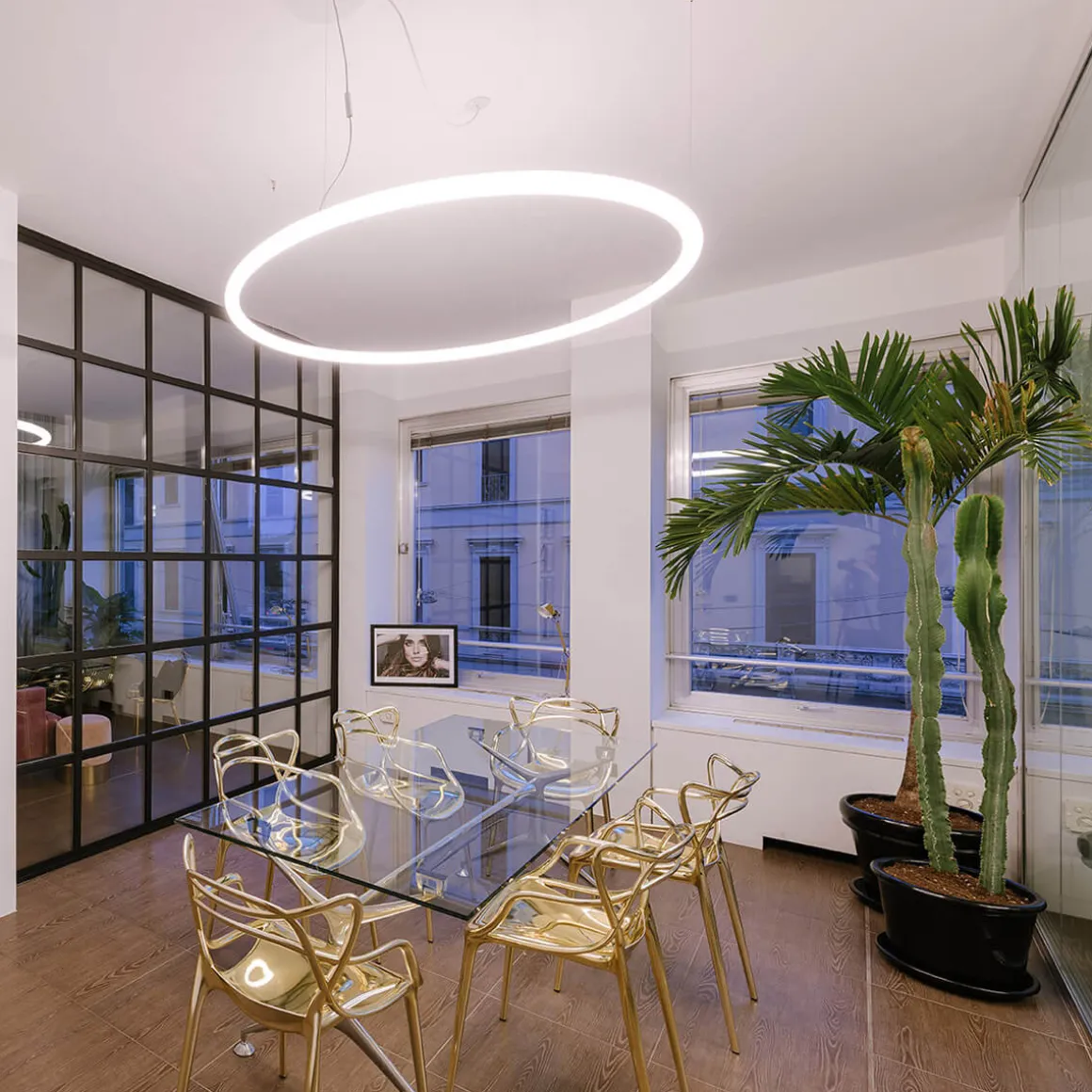 Die Alphabet of Light Circular LED Sospensione aus der Design Kollektion von Artemide ist in zwei Größen erhältlich und wird aus mehreren bogenförmigen Modulen zusammengesteckt. Artemide erschafft mit ihrem Alphabet of Light System lineare, sowie kreisförmige Lichtformen. Darüber hinaus lassen sich Wortabbildungen und die verschiedensten Zahlenkombinationen darstellen, die Möglichkeiten sind unendlich, viele verschiedene Arrangements der Kollektion sind umsetzbar und auf Anfrage käuflich zu erwerben.