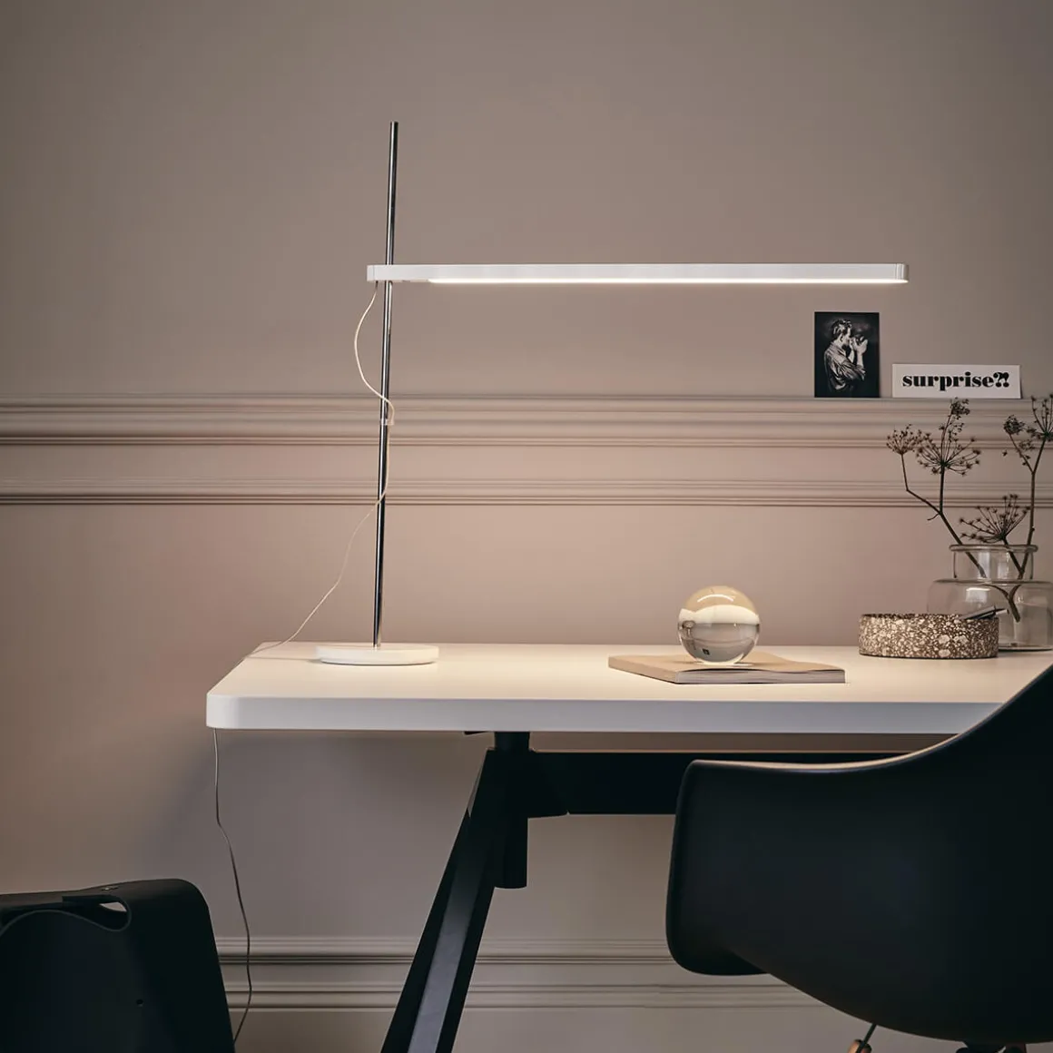 Mit ihrer reduzierten Silhouette bleibt die Tischlampe dezent im Hintergrund und drängt sich optisch nicht in den Vordergrund. Gleichzeitig unterstreicht ihre technische Raffinesse ihre Präsenz als hochwertiges Arbeitsinstrument. Die aktuelle Version überzeugt mit einer fast dreifachen Lichtleistung gegenüber älteren Modellen – und das bei nur minimal höherem Energiebedarf.