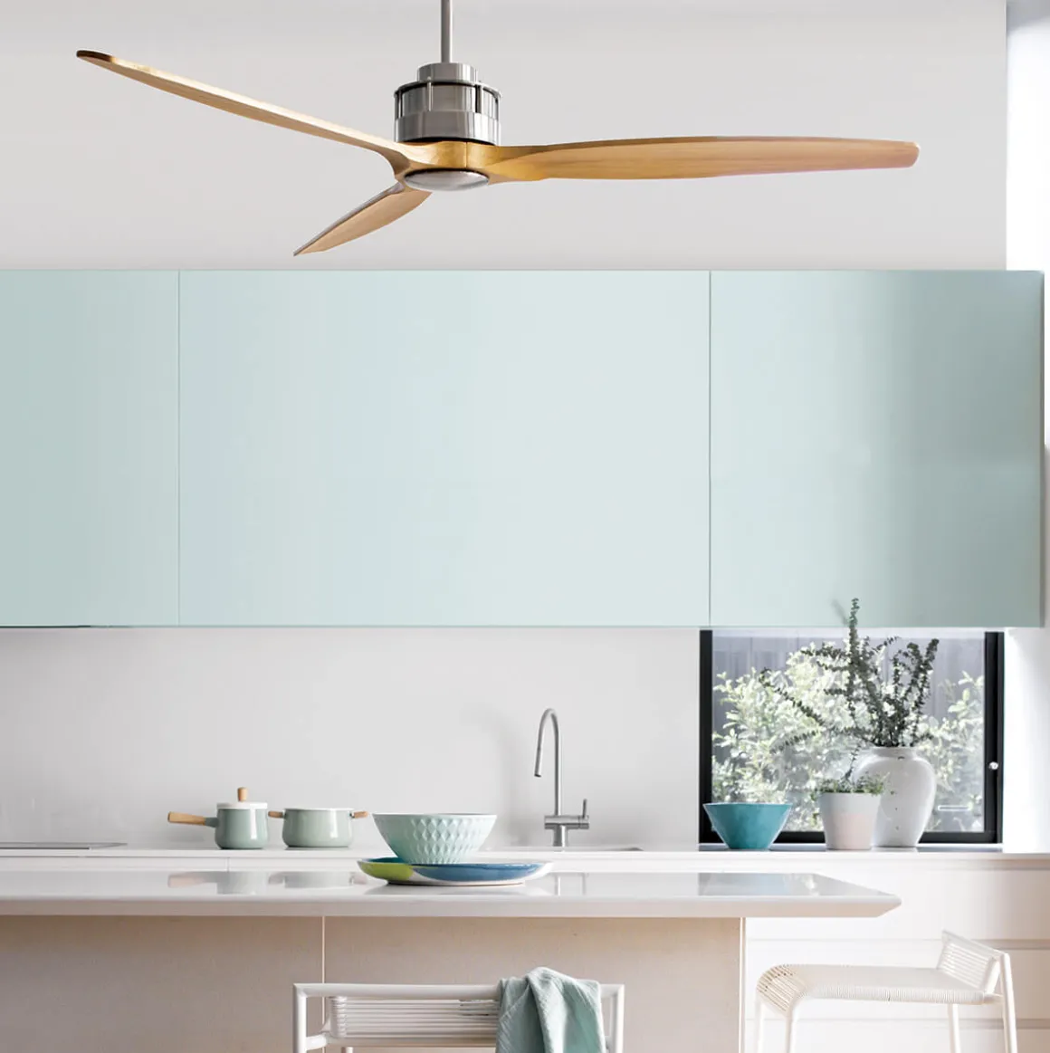 Der Airfusion Akmani zeichnet sich durch seine drei exquisiten Propellerflügel aus hochwertigem Kiefern-Holz aus. Kiefernholz ist leicht zu bearbeiten, vielseitig einsetzbar und gilt aufgrund seines schnellen Wachstums als besonders umweltfreundlich, was den Ventilator zu einer nachhaltigen Wahl macht. Die Flügel spannen sich über einen Durchmesser von 156 cm, wodurch eine Luftleistung von bis zu 223 m²/min erreicht wird – perfekt für Räume bis 40 m².
