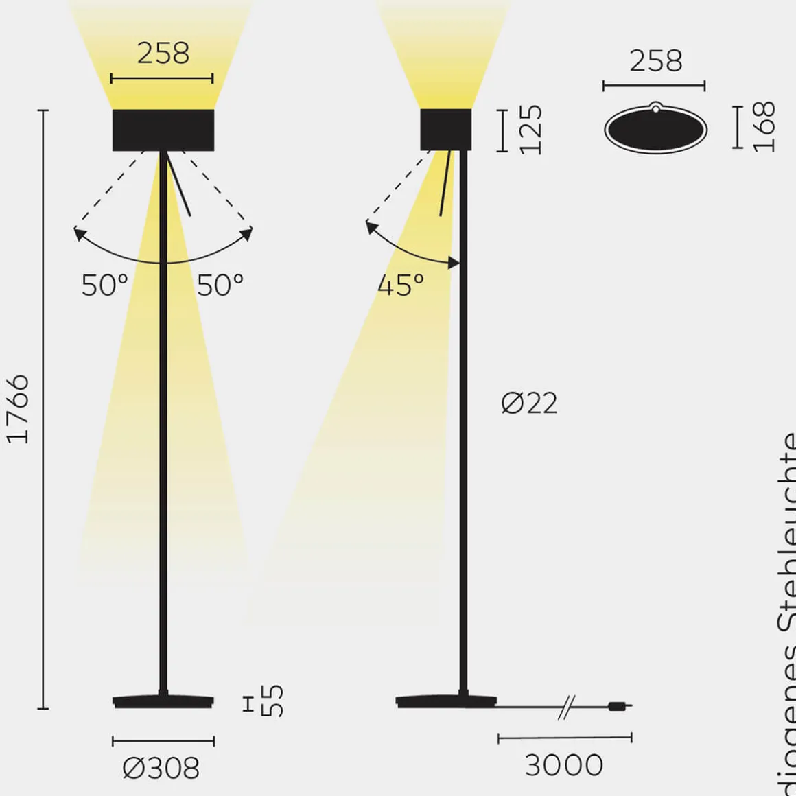 - Moderner Deckenfluter mit ausrichtbarem, blendfreiem Leselicht