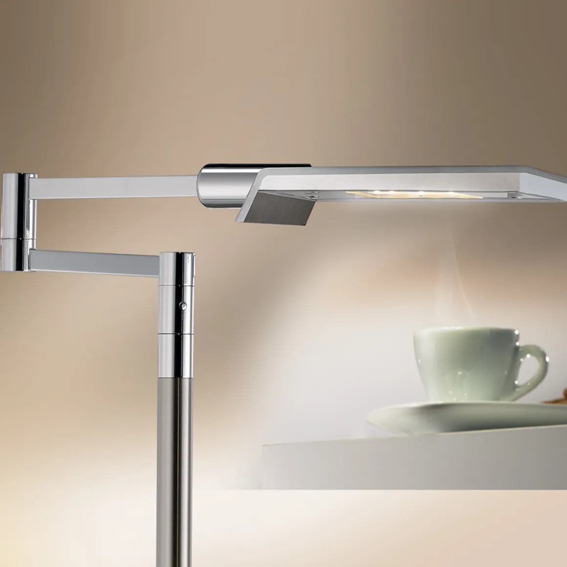 Zusätzlichen Nutzen erhält die Tizian LED Leseleuchte aufgrund ihres verstellbaren Bridgearms. Dieser ist um 300° schwenkbar, sodass der Leuchtenkopf stets nach Belieben ausgerichtet werden kann. Die Bewegung erfolgt geräuscharm und besonders leichtgängig, was den Bedienkomfort der erhöht.