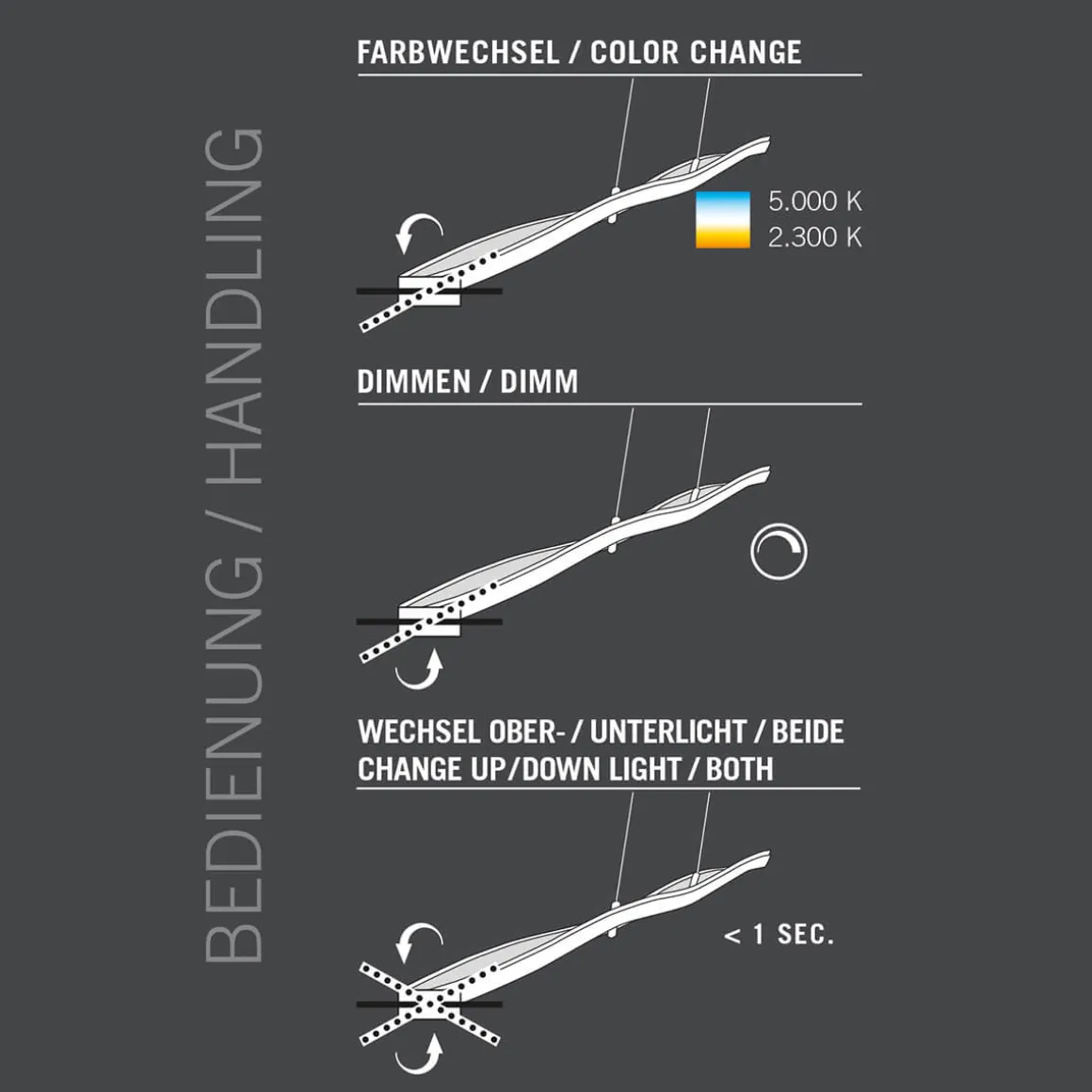 - Stufenlos dimmbar durch Kippen des Pendelelements (Vertical Control)