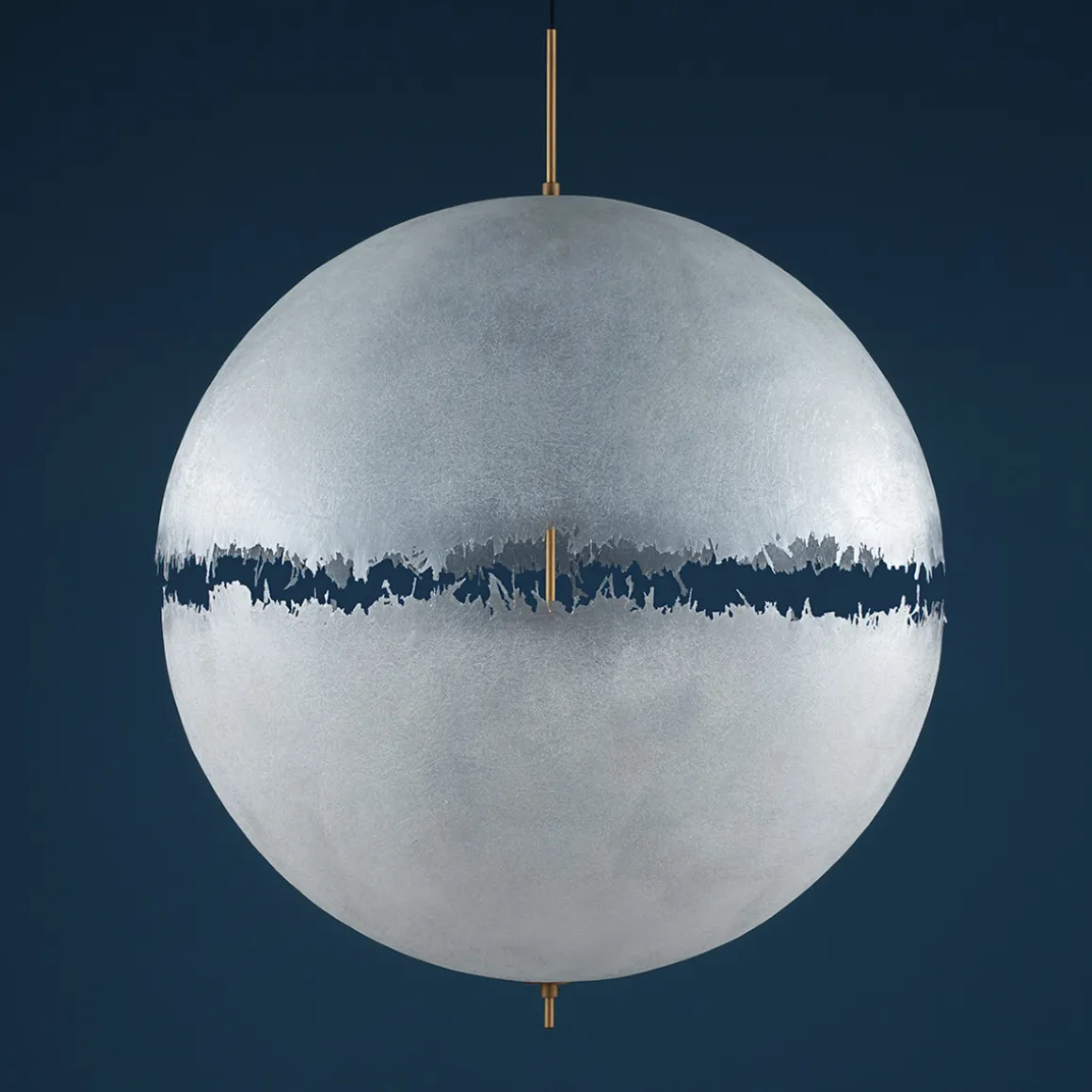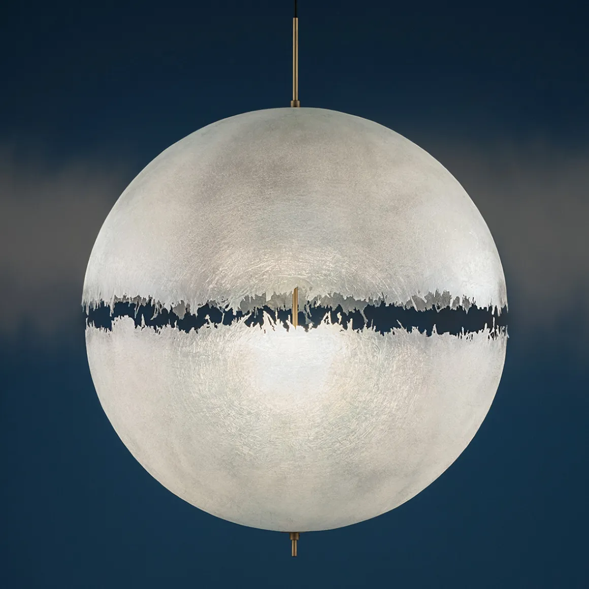 - Kugelförmiger Schirm aus weiß lackiertem oder naturfarbenem Glasfaserkunststoff