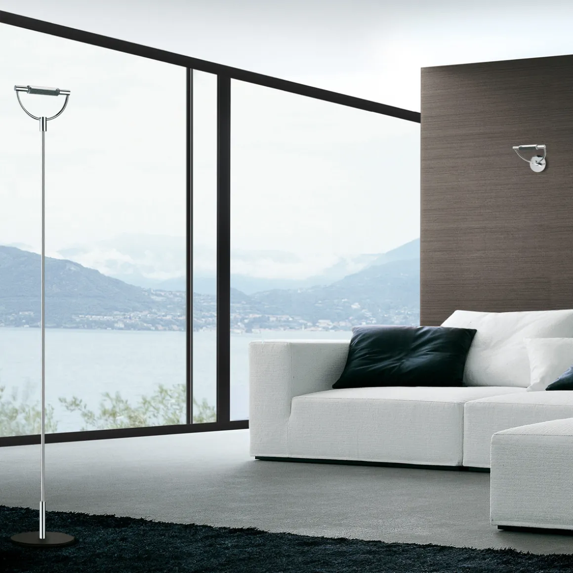 Die Cini & Nils Graditerra retinato Stehleuchte ist in glanzverchromter oder satiniert-vernickelter Ausführung zu erwerben. Basen in unterschiedlicher Tönung erweitern die Produktpalette und bieten eine individuelle Art der Gestaltung.