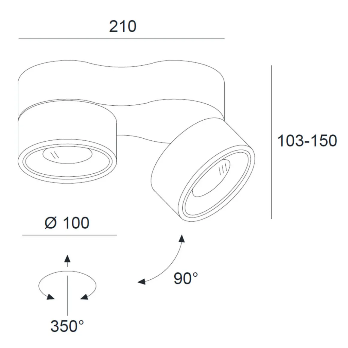 - Je um 350° drehbare und um 90° schwenkbare Köpfe