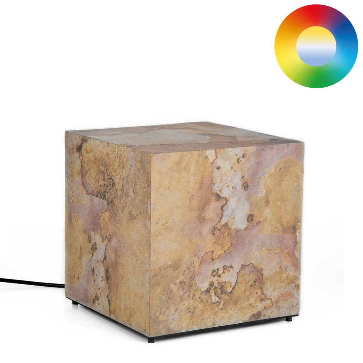 Der Lichtwürfel besteht aus sorgfältig miteinander verbundenen Schieferplatten und PVC, die durch hochwertiges Venylesterharz verstärkt sind. Die Verbindungselemente sind aus rostfreiem Edelstahl gefertigt, was der Stabilität und Langlebigkeit verleiht. Die eingebauten RGB-LED- bieten Millionen von Farben sowie verschiedene Farbtemperaturen von Warm- bis Kaltweiß, die ganz nach Belieben einstellbar sind. So können Sie die Beleuchtung perfekt an die gewünschte Stimmung anpassen.