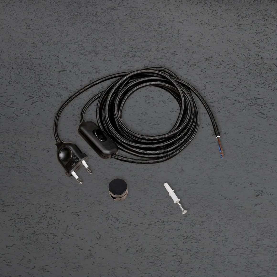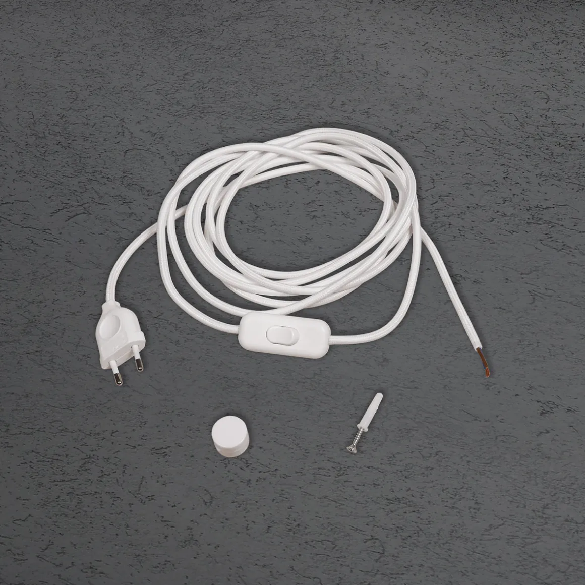 - Textilummantelte Zuleitung in weißer oder schwarzer Tönung