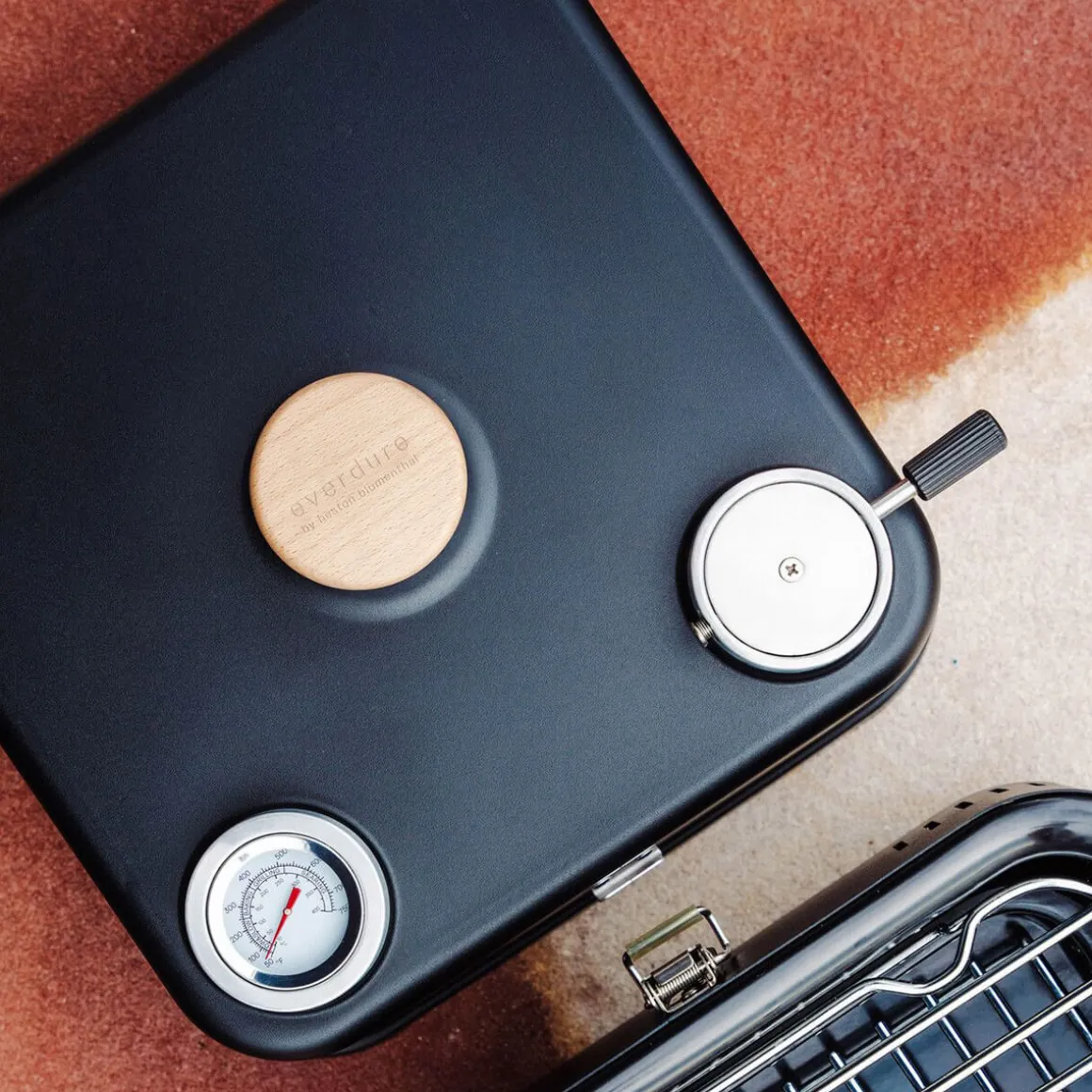 Die Garhaube des Cube 360 Holzkohlegrills ist mit einem hochwertigen Deckelthermometer ausgestattet, und der voll justierbare Luftauslass ermöglicht eine Präzision bei der Temperatureinstellung, die bei mobilen Grills bisher unerreicht ist. Der Echtholz-Knauf aus besonders widerstandsfähigem Hartholz schützt vor Hitze und fügt dem Grill einen optischen Akzent hinzu.