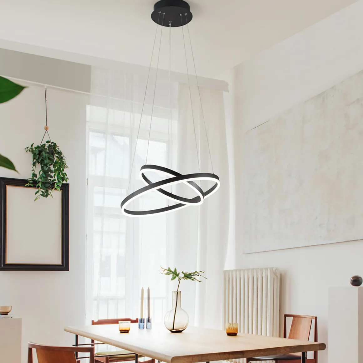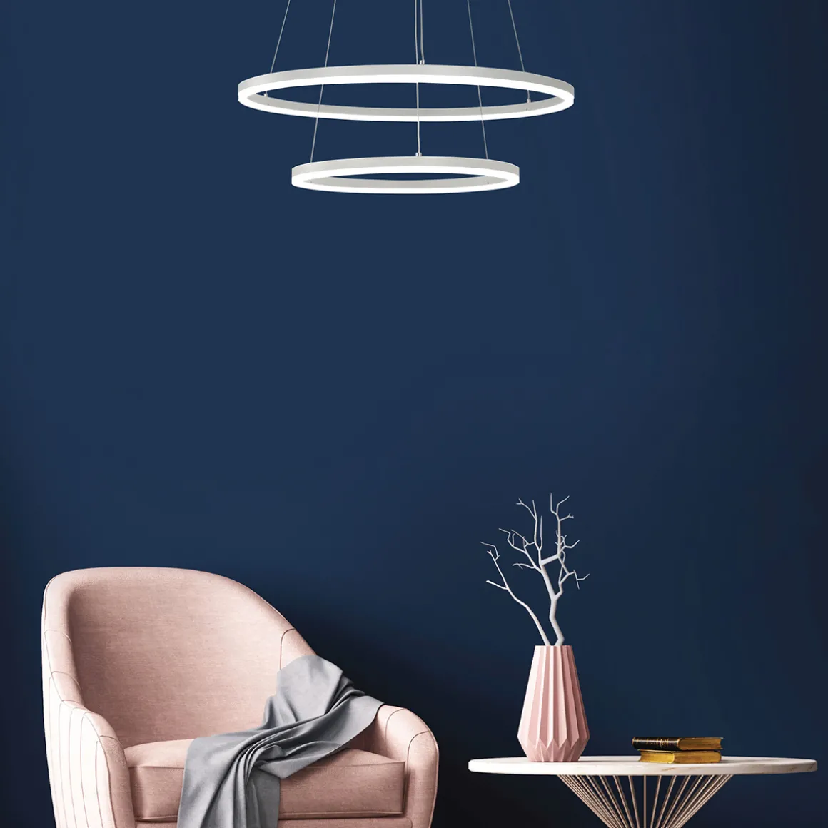 - Modern-diskrete Pendelleuchte mit doppelten Lichtringen