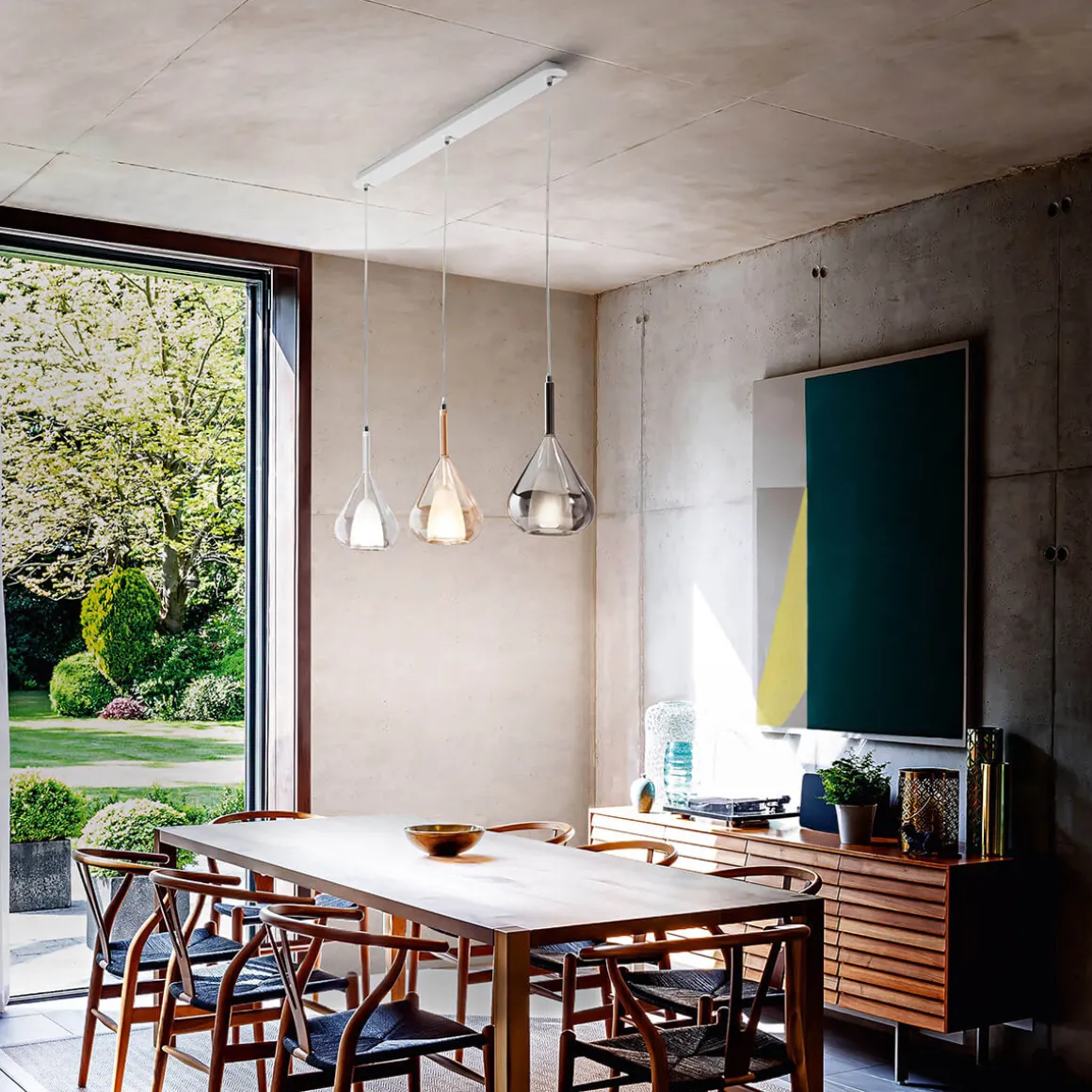 - 3-flammige Pendellampe zur Beleuchtung länglicher Esstische