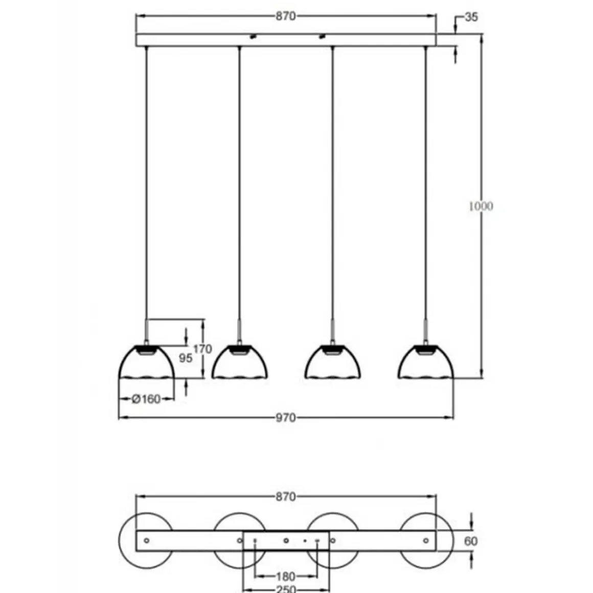 - Hängeleuchte mit 4 dekorativen Borosilikatgläsern und schwarzem Balken-Baldachin