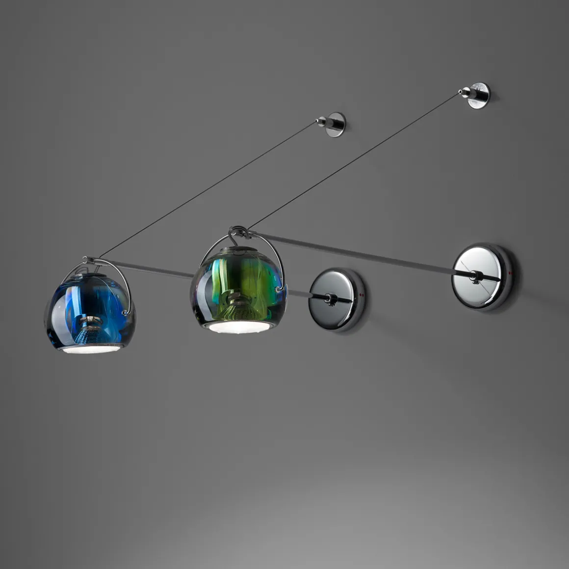 - Funktionale Wandleuchte aus Metall und farbigem Bleikristallglas